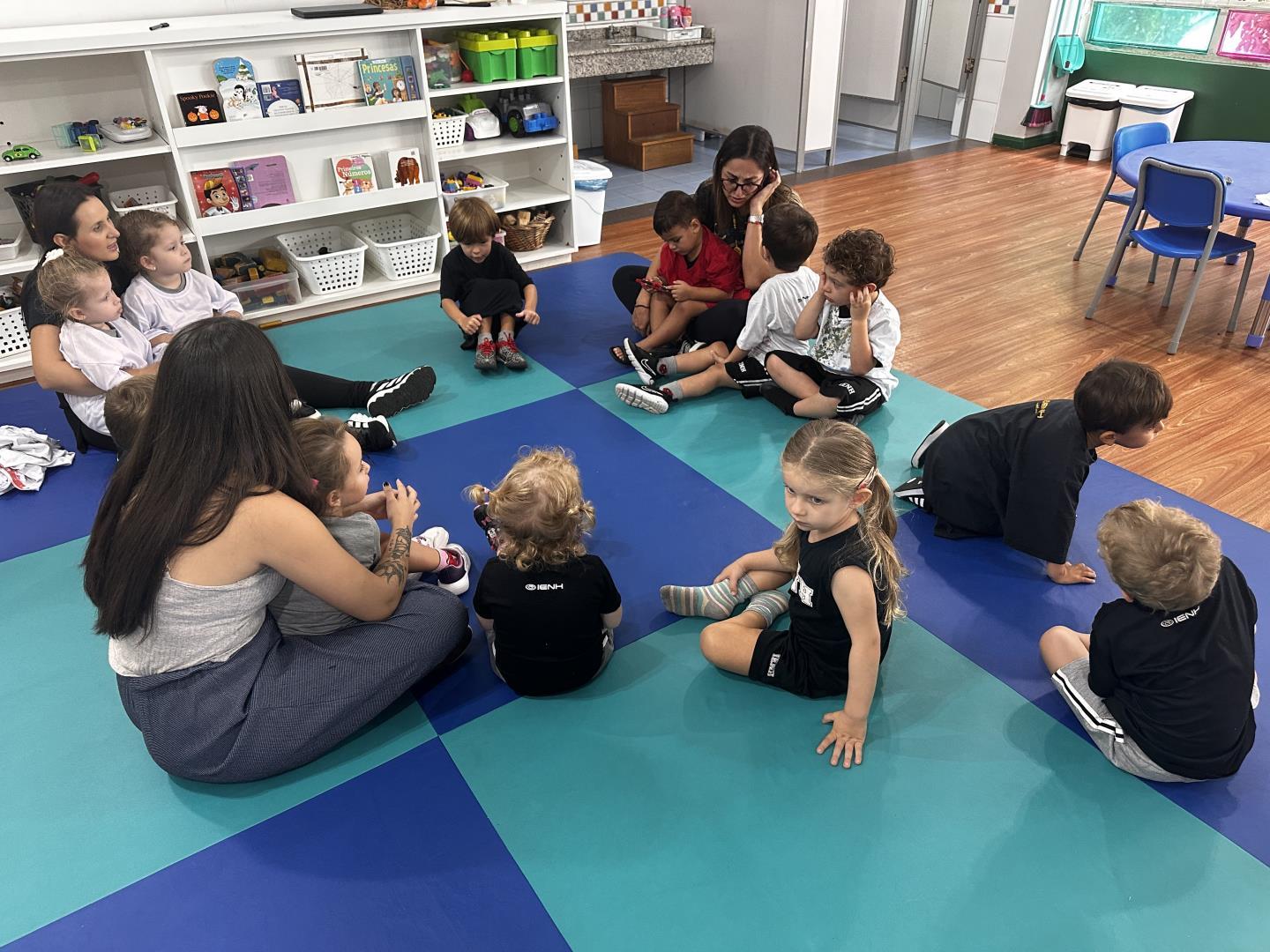 A proposta, conduzida pelas professoras Joana Schneider Machado e Amanda Siebel e pela teacher Larissa Vieira Bernardi, além de incentivar a experimentação artística, também valorizou o trabalho de uma artista mulher, conectando a atividade às reflexões realizadas ao longo da semana sobre o Dia Internacional da Mulher.