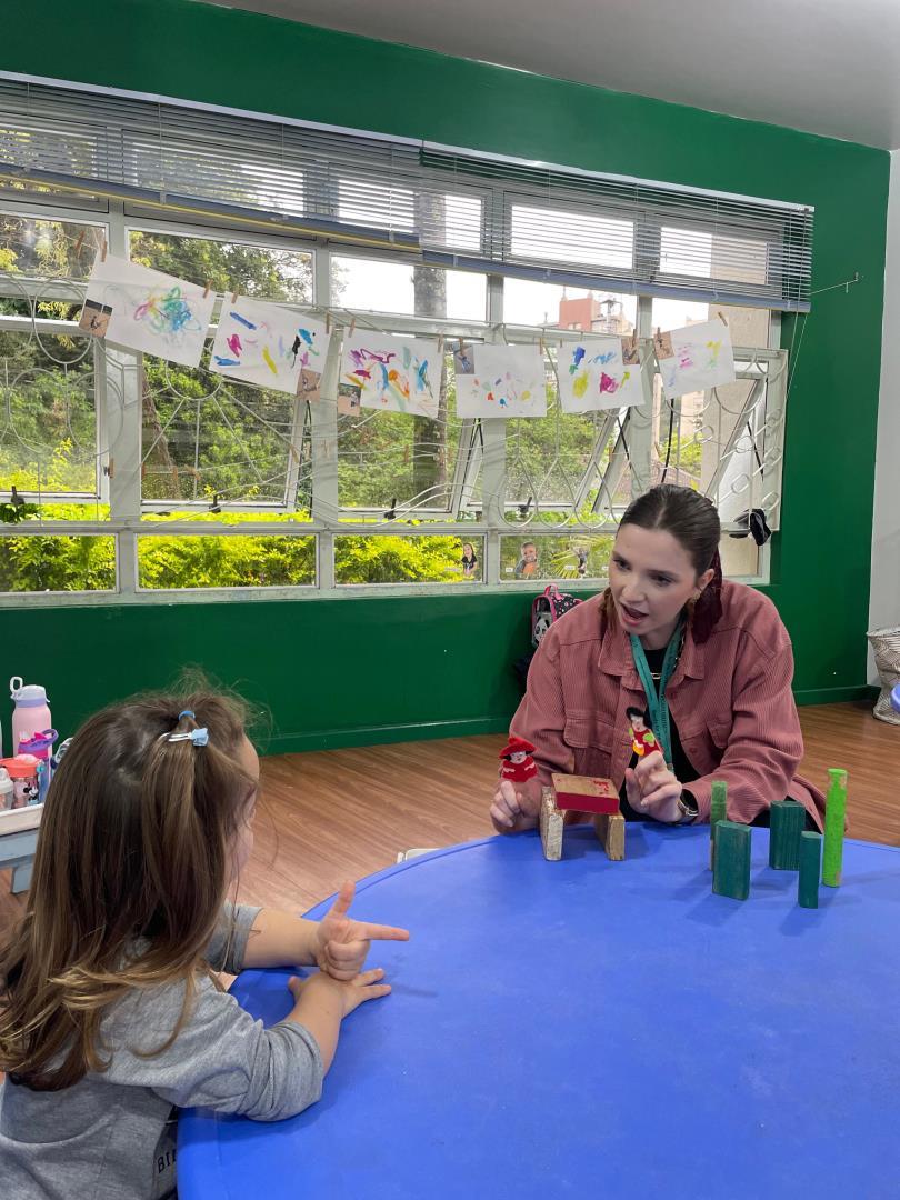 Durante as propostas, os pequenos exploraram o universo das rimas, brincaram com sons e palavras, e participaram de momentos especiais de “hora do conto” com fantoches, tornando as histórias ainda mais envolventes. Também realizaram atividades práticas, como selecionar objetos nas cores amarelo e vermelho e utilizar tintas e carrinhos para expressar suas percepções das histórias, transformando o aprendizado em uma experiência sensorial e divertida.