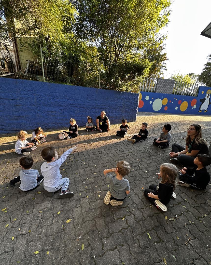 As crianças do Kindergarten 3A da Educação Infantil do Currículo Internacional Bilíngue da IENH – Unidade Pindorama participaram de uma vivência especial durante o período de Wellbeing. A turma foi convidada a ir até a rótula da Educação Infantil, um espaço externo ao ar livre, para explorar a chamada paisagem sonora. A atividade iniciou com a observação do local, que ocorreu no dia 29 de agosto.