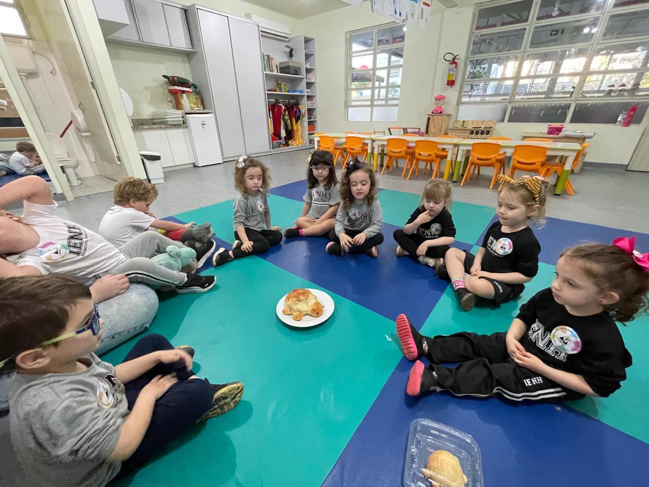 O Kindergarten 3B da Educação Infantil do Currículo Internacional Bilíngue da IENH - Unidade Oswaldo Cruz realizou uma atividade culinária em que as crianças prepararam um delicioso pãozinho caseiro com um detalhe muito especial: o pão se transformou em tartarugas. A atividade ocorreu no dia 26 de setembro, na Cozinha Escola, e foi proposta pela professora Cláudia Nis.