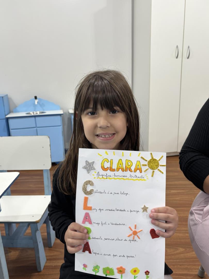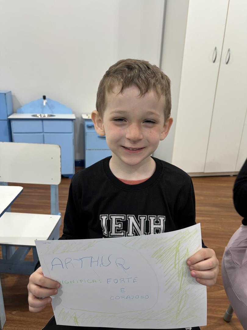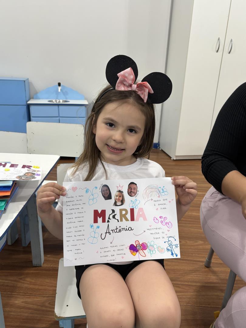 O momento das apresentações foi marcado por significado e pertencimento, com cada criança compartilhando sua identidade e história. A professora auxiliou na leitura dos relatos enviados pelas famílias, enriquecendo ainda mais a troca, o respeito e a empatia no grupo.