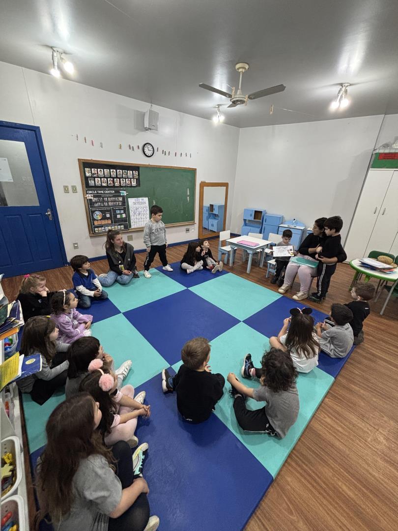 A proposta, conduzida pela professora Flavia Finamor e teacher Laura Andrioli, busca levar os alunos a compreenderem a escrita como uma invenção humana criada ao longo da história para registrar e comunicar ideias, sentimentos, desejos e conhecimentos.