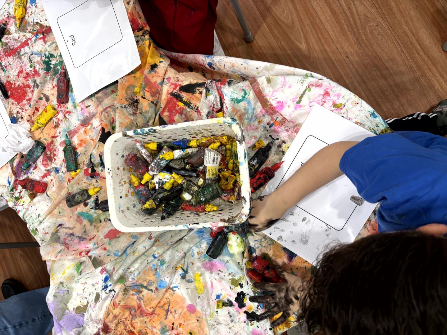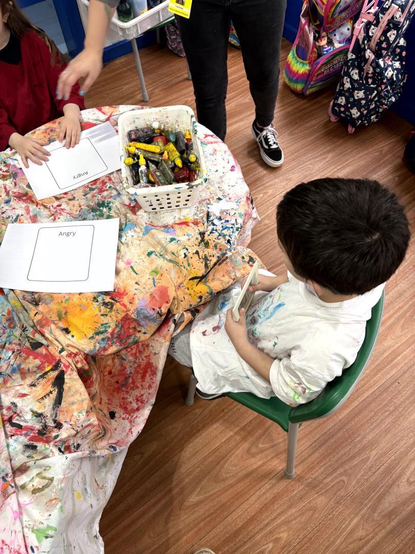 Durante a atividade, as crianças confeccionaram seus próprios emotion cards com as principais emoções que haviam aprendido a nomear. Utilizando cola colorida e giz líquido, cada aluno registrou suas percepções de maneira única e expressiva. A vivência ocorreu em um momento de learning centers, no qual diferentes espaços propunham desafios voltados à compreensão e representação dos sentimentos.