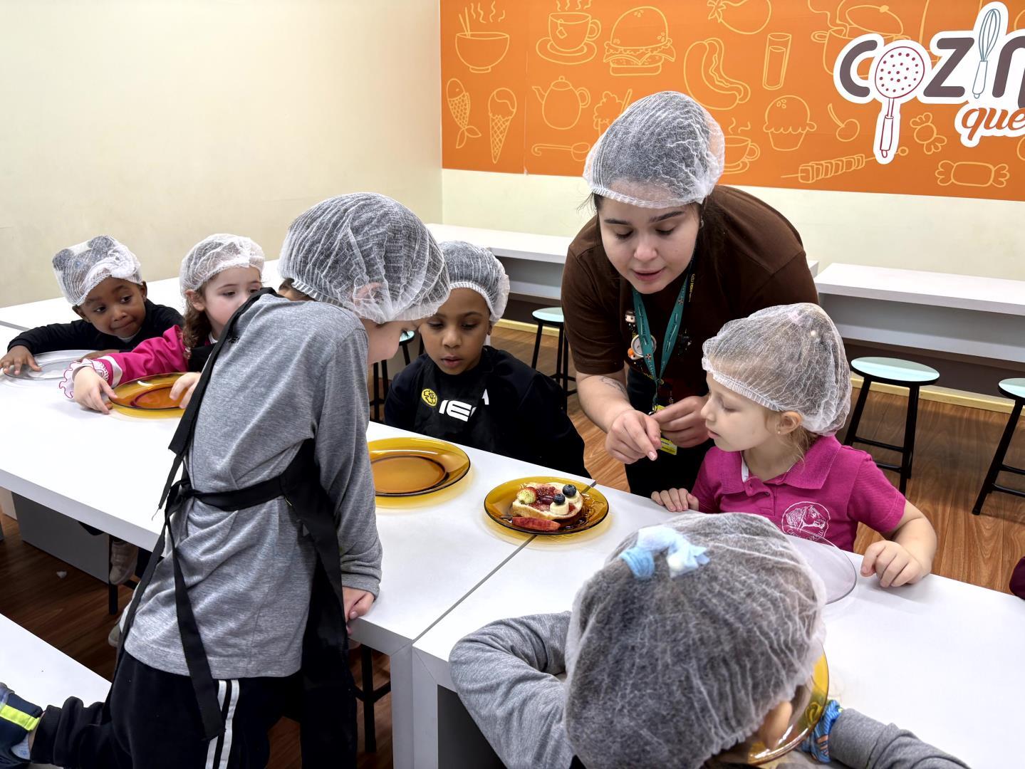 Durante a Cooking Class, realizada dia 15 de setembro, as crianças do Kindergarten 4C da Educação Infantil do Currículo Internacional Bilíngue da IENH - Unidade Pindorama participaram da proposta Funny Face Toasts – Exploring the Body Parts. A atividade teve como objetivo integrar o aprendizado do inglês ao cotidiano das crianças, por meio do contato com alimentos, da criatividade e da exploração do vocabulário relacionado às partes do corpo.