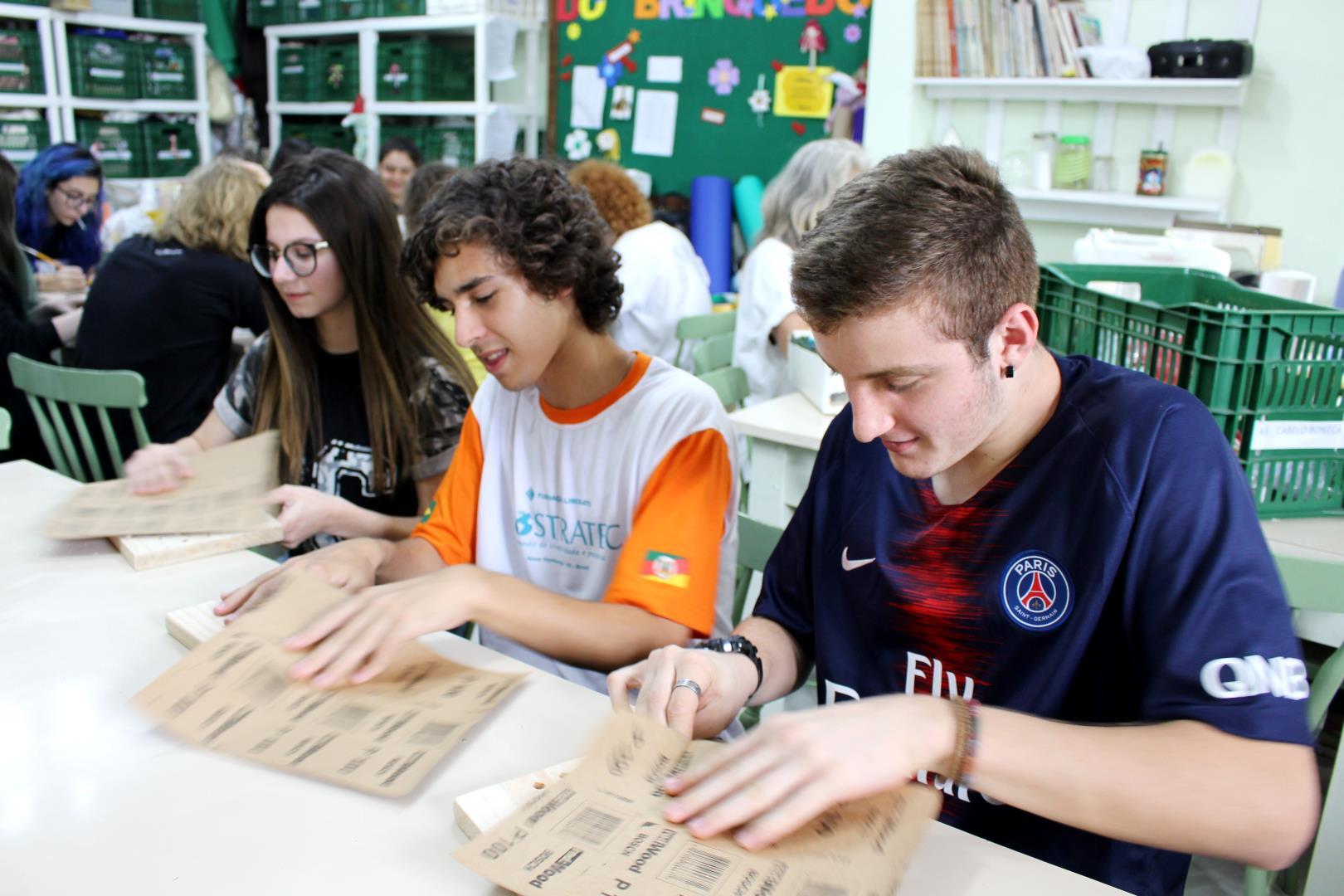 Toda quarta-feira, no turno da tarde, os estudantes reúnem-se para confeccionar brinquedos que, posteriormente, são doados para crianças e idosos de entidades sociais. Com materiais recicláveis, eles constroem de jogos de mesa a bonecas de pano.