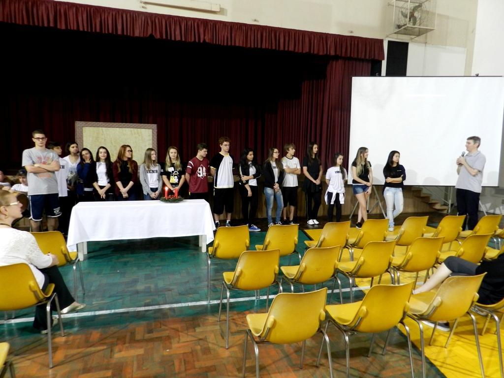 Após a primeira fala do Teólogo e Professor Marcelo Ackermann, recepcionando os presentes, o Grupo Arte em Movimento, que integra os Programas Socioambientais da IENH, cantou e tocou com flauta a música We Wish You A Merry Christmas. Seguindo a manhã, os integrantes da nova Gestão do Grêmio Estudantil Castro Alves - GECA apresentaram as propostas para 2016. Além disso, a Presidente e o Vice-Presidente do GECA 2015 - Victória Machado e Pedro Decker, respectivamente, passaram os cargos para a nova gestão através de abraços. Através de uma bênção, o Teólogo Ackermann ainda desejou uma boa gestão para os novos integrantes do Grêmio.