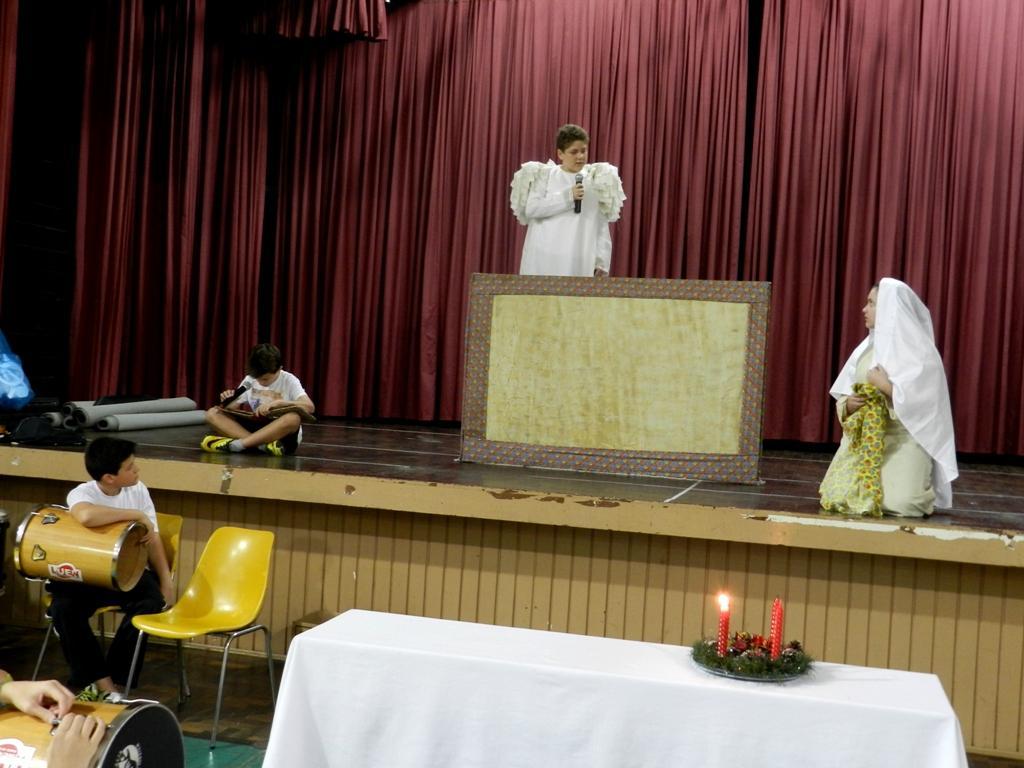 A adaptação da peça teatral "As aventuras da Bíblia", dirigida pelo Professor Fábio Ferraz, foi apresentada pelos alunos dos 7ºs anos. Com Maria, José, o Anjo Gabriel, os reis magos, o burrinho e a Estrela de Davi, os estudantes contaram como ocorreu o nascimento de Jesus Cristo. "Eles interpretaram uma história com mais de 2000 mil anos, que ainda hoje é atual", destacou Ackermann.