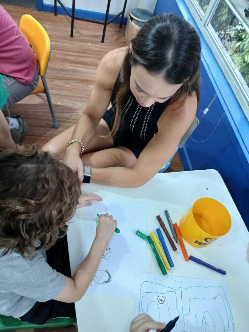 As crianças trocaram ideias entre si, respondendo às perguntas e compartilhando motivos de gratidão. Esses agradecimentos foram colocados em oração, com a Raquel incentivando a todos a espalharem a gratidão em seu dia a dia.