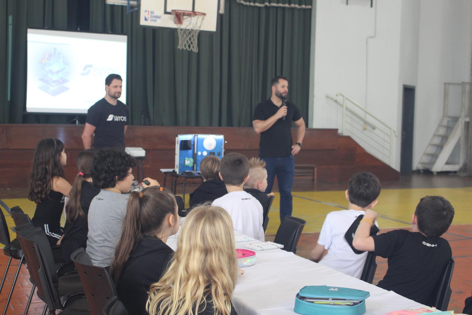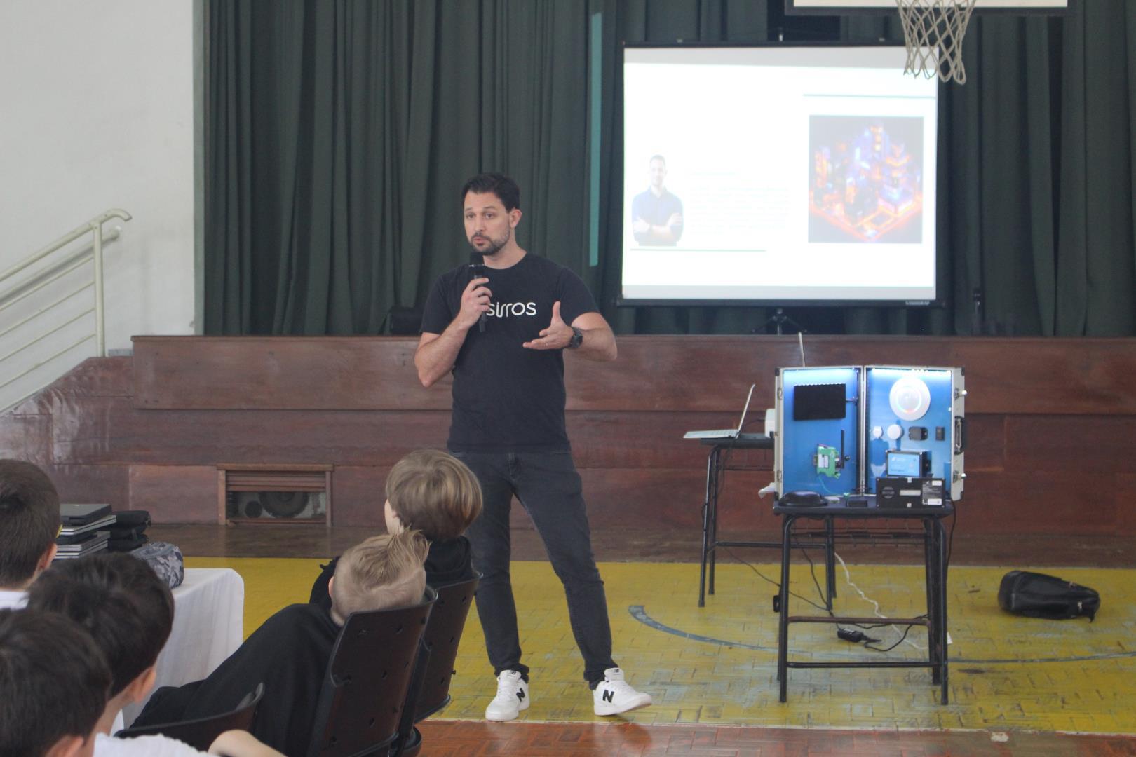 Realizada no ginásio da Unidade Pindorama, a atividade contou com três etapas dinâmicas. Primeiro, os estudantes participaram de um talk conduzido por Diego Schlindwein, CEO ( Chief Executive Officer) da Sirros IOT, uma startup de Indústria 4.0 eleita por dois anos consecutivos como a melhor startup de IOT do Brasil e tem no seu portfólio grandes empresas como clientes (Randon, ArcelorMittal, Tigre, dentre tantas outras). Além disso, o Diego apresentou conceitos e exemplos, mas também trouxe dispositivos de hardware IOT para demonstrar aos alunos.