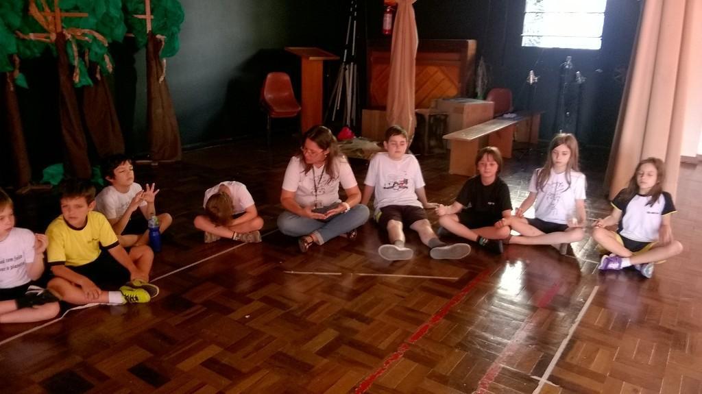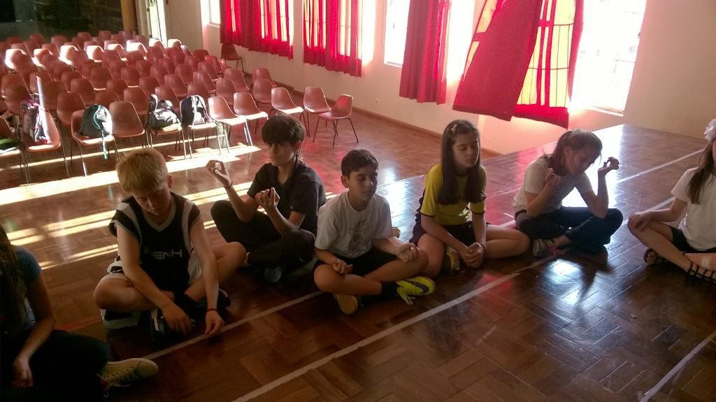 Para o momento de finalização, a Pedagoga e Terapeuta Cris Mendes conversou com os alunos, realizando um momento de meditação. O objetivo da conversa foi incentivar que os grupos refletissem sobre o que existe de bom na vida deles e o que ainda pode melhorar. Também foram discutidos assuntos como a violência, os ataques terroristas na França e outros que atingem a todos como seres humanos. "Entendemos que, ao longo do ano, o trabalho dos alunos no projeto consistiu em cuidar do planeta e cuidar do trânsito, mas que para que essas atitudes possam ser feitas da melhor maneira, primeiro é preciso olharmos para nós mesmos, para como nos sentimos e como estamos vivendo", afirma uma das professoras que organizou o evento - Juliana Bohn. Após a meditação, os estudantes puderam registrar suas reflexões produzindo desenho. A reunião foi finalizada com um lanche colaborativo, para o qual cada um trouxe sua contribuição.