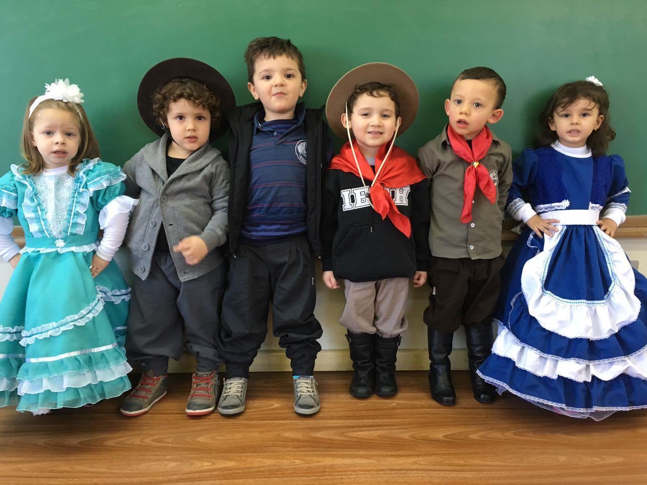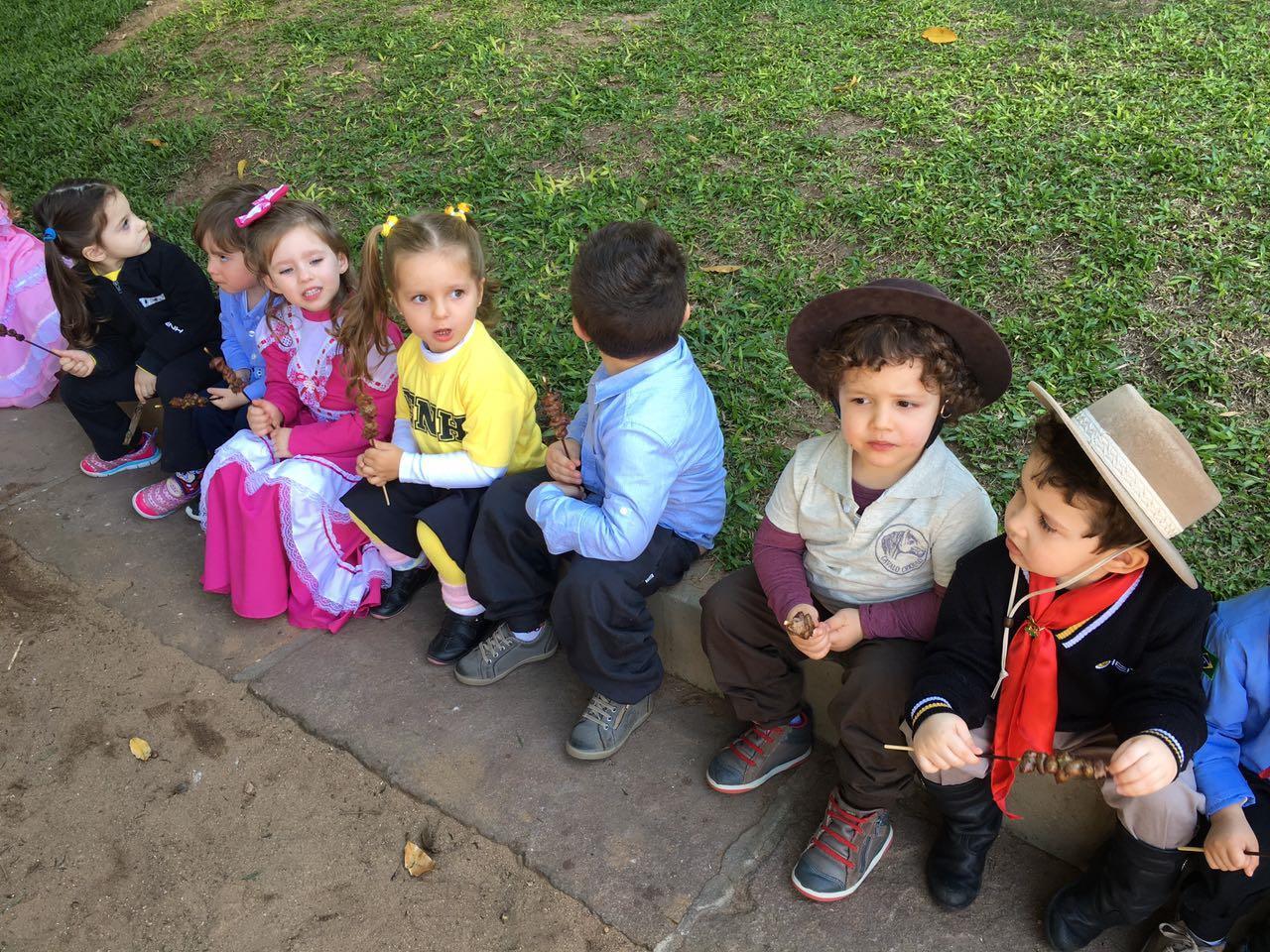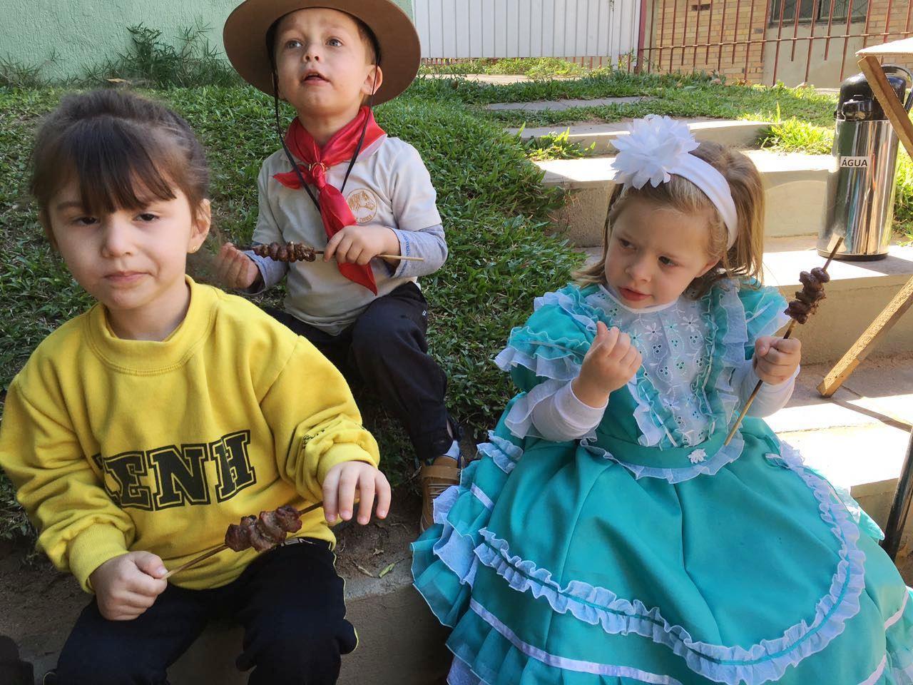 Acompanhados pelas Professoras Joana Machado e Ana Weber, os alunos conheceram a bandeira, exploraram materiais e registro em folha e também experimentaram o churrasquinho com o Professor Gustavo Cerveira. Além disso, os grupos pesquisaram sobre o tema as danças gauchescas na Sala Interativa. Durante as programações, os alunos puderam vir vestidos de prenda e gaúcho.