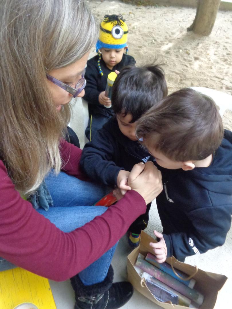 No dia 29 de abril, o grupo explorou as sucatas e encontrou vários canos de papelão. A partir disso, a Professora Camila Karloh apresentou à turma o pau de chuva, um instrumento musical de percussão. Os alunos pintaram os canos de papelão com cola colorida e também auxiliaram a Professora Camila a colocar pregos ao redor. A Professora de Música – Michele Andrioli auxiliou os alunos na conclusão da construção do instrumento, colocando areia e pedrinhas que, ao colidirem os pregos, produzem sons.