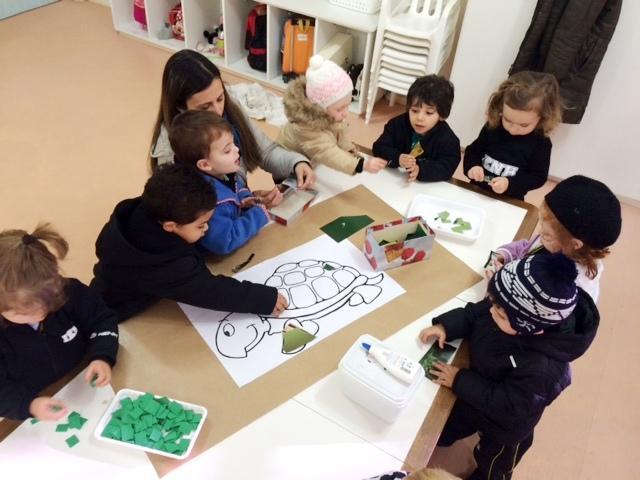 A mãe do aluno Matheus Fraga Arnhold, a profissional de Relações Públicas – Poliana Fraga esteve na sala de aula da turma para realizar uma atividade sobre as tartarugas. O desenho de uma grande tartaruga foi colado em uma folha de papel pardo. Os estudantes, em conjunto com a mãe Poliana, realizaram a colagem de diversos materiais no cartaz, colorindo o animal impresso. Conforme a Professora Camila Karloh, o momento contribuiu para o projeto de estudos do Nível 2A, que aborda as tartarugas. “Os alunos ficaram muito envolvidos e contentes com essa experiência”, relata a Professora.