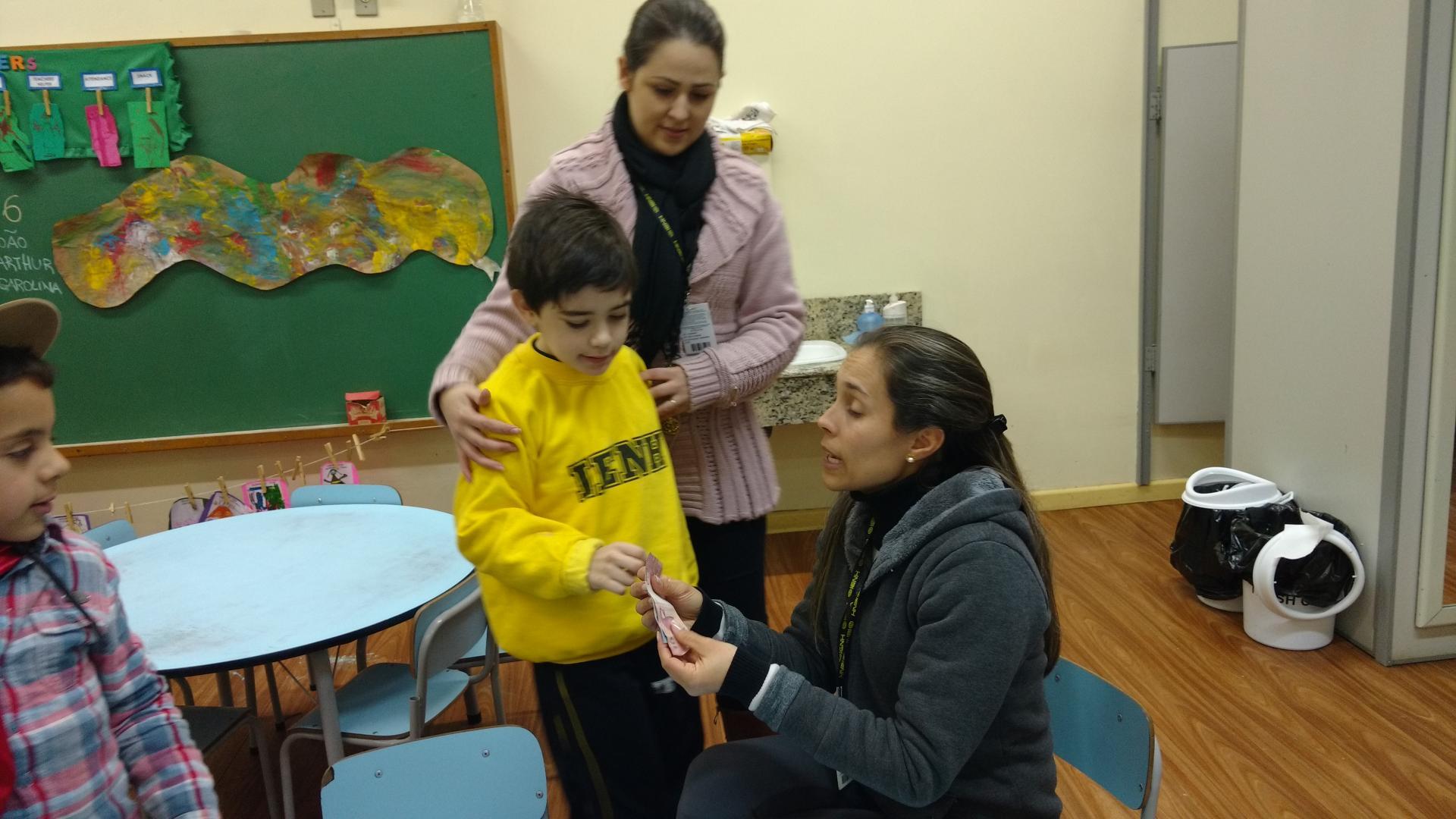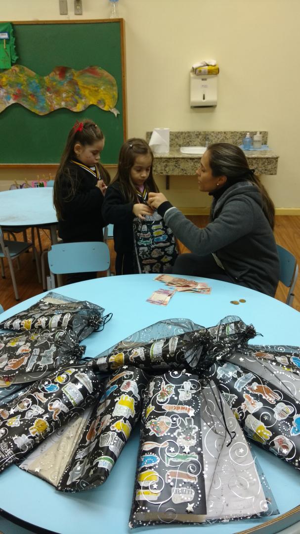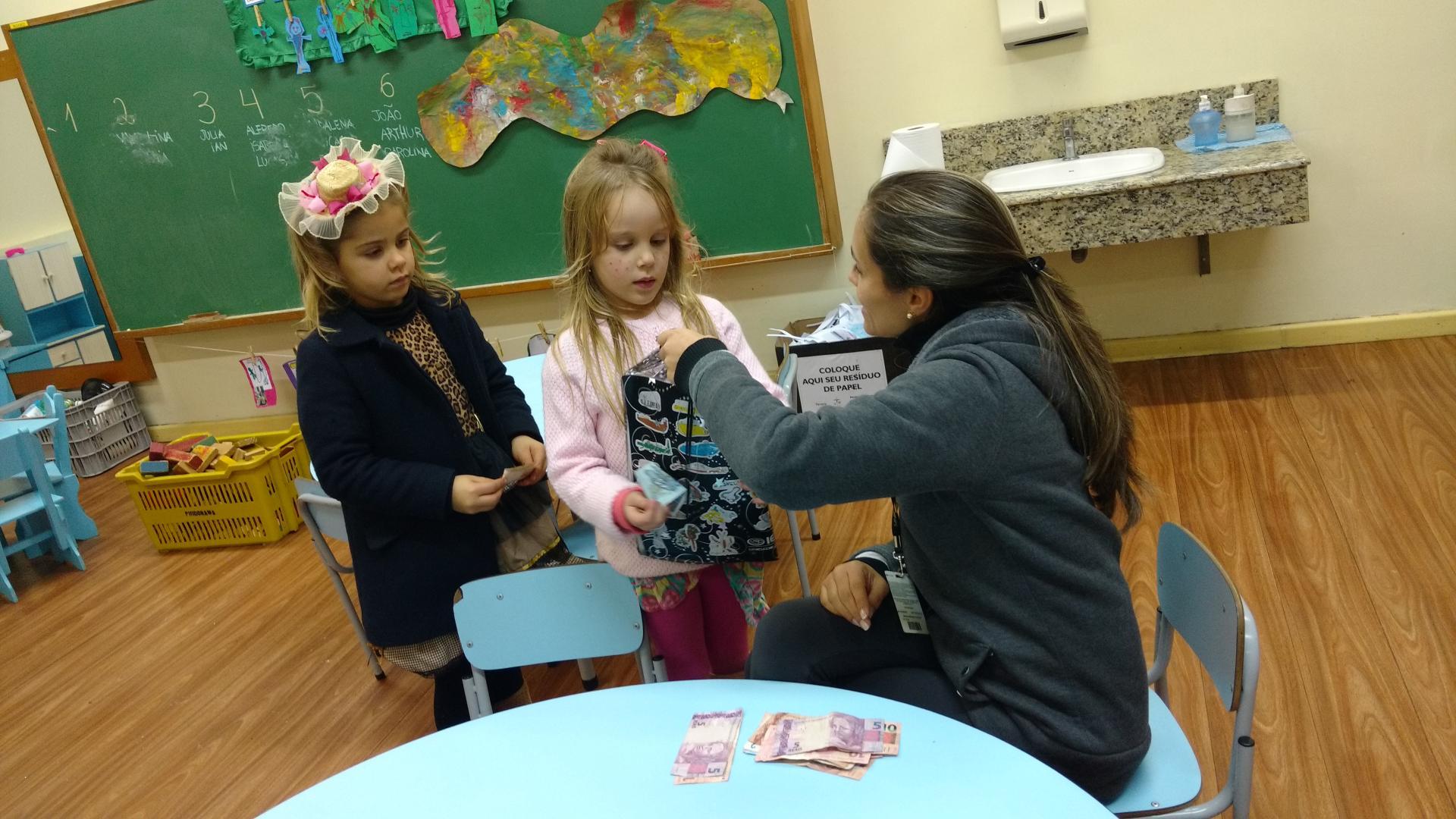 O jogo de lince foi construído pela turma através dos desenhos que cada aluno criou dos animais que foram trabalhados em sala de aula. Depois de jogarem coletivamente, cada aluno teve a oportunidade de adquirir uma cópia do jogo com a tabela de regras criada pela turma e a tabela de marcação dos pontos, trazendo seu dinheiro para a escola para comprar. “Esse momento foi de extrema importância, pois conseguimos unir ao conteúdo do jogo uma vivência de compra e de manuseio de dinheiro. Exploramos as cédulas, suas cores, números e valores e fizemos relações entre quantidades, troco, entre outros. As crianças levaram seus jogos pra casa cheios de alegria e emoção”, relata a Professora Gabriela. Também organizou a atividade a Professora Telma Puhl.