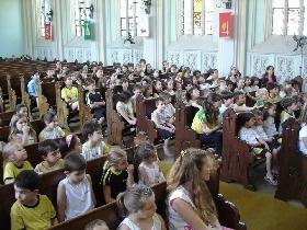 Após, os alunos das 3as séries caminharam até o altar, cantando, e lá colocaram objetos que representavam as coisas pelas quais desejavam agradecer. No altar, os estudantes colocaram em agradecimento “casa”, “bichinhos de pelúcia”, “livros”, entre outros.