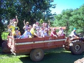 Durante o passeio, os alunos realizaram atividades como: trilha, passeio no riacho, oficina de solos, visitação na granja. O grupo de estudantes dormiu na Hospedaria do ECOVIV.