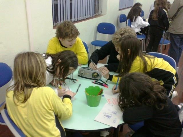 As turmas criaram pequenos textos sobre a importância da amizade, em Português e Espanhol e desenharam suas ideias filosóficas sobre o assunto tratado.