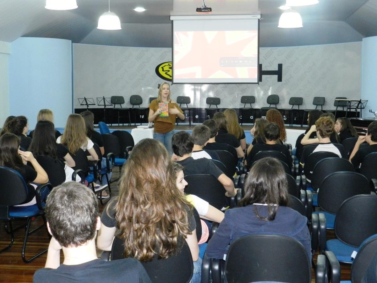 Atentos, os estudantes ouviram sobre a nova obra, que será lançada no dia 09 de outubro, às 19 horas. Ex-aluna da IENH, Annie relata que chegar na Fundação traz muitas memórias, especial de alguns professores: “Tive muita sorte com todos os meus professores de português e isso devo às Unidades Pindorama e Fundação Evangélica”, ressalta.