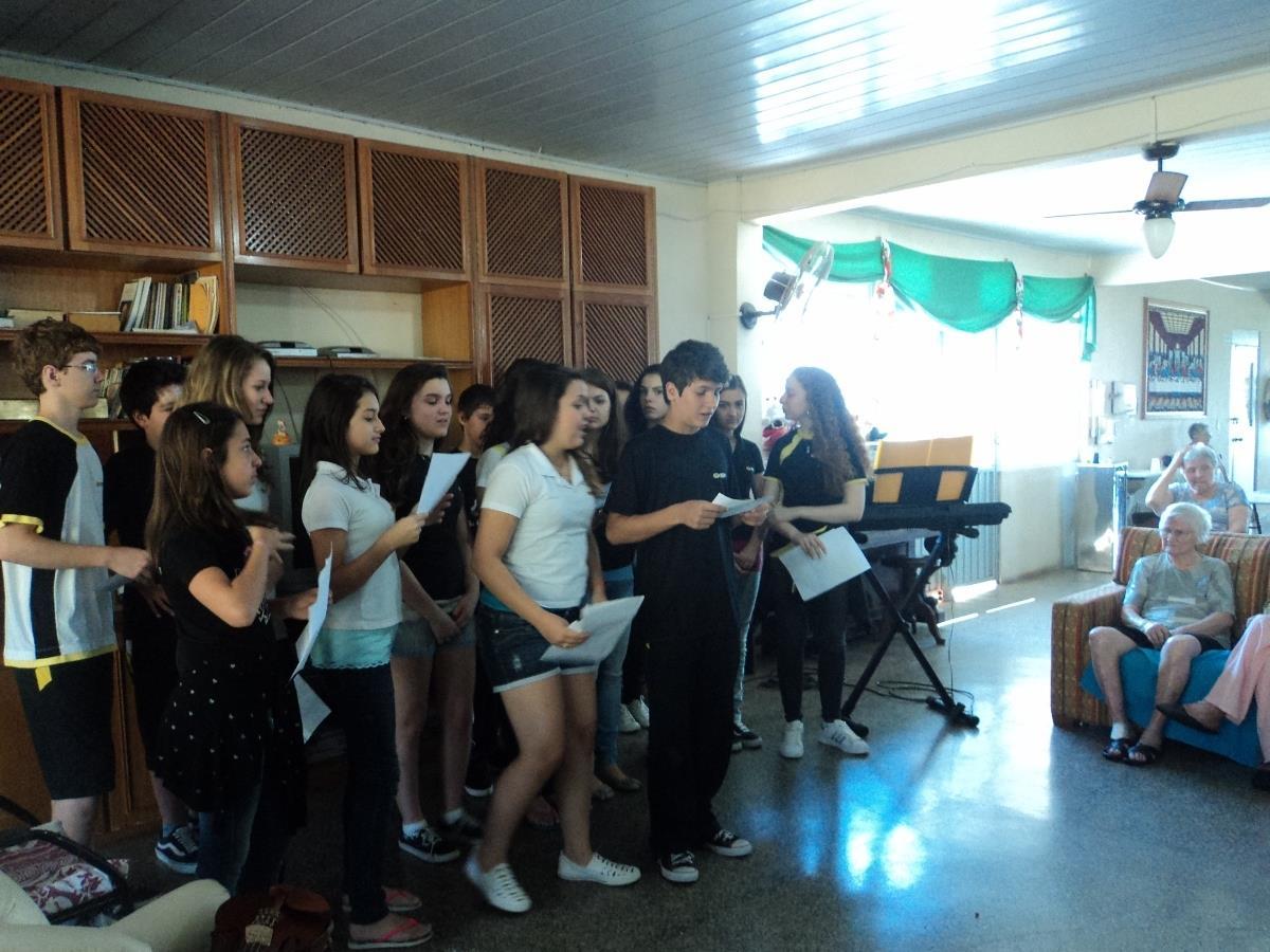 Os estudantes também se envolveram na organização dos momentos, preparando diversas atividades. No Lar São Vicente eles conversaram, cantaram, declamaram poesias e tocaram instrumentos para os idosos.