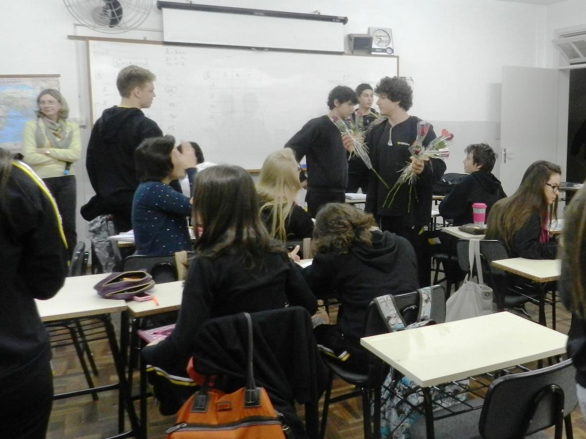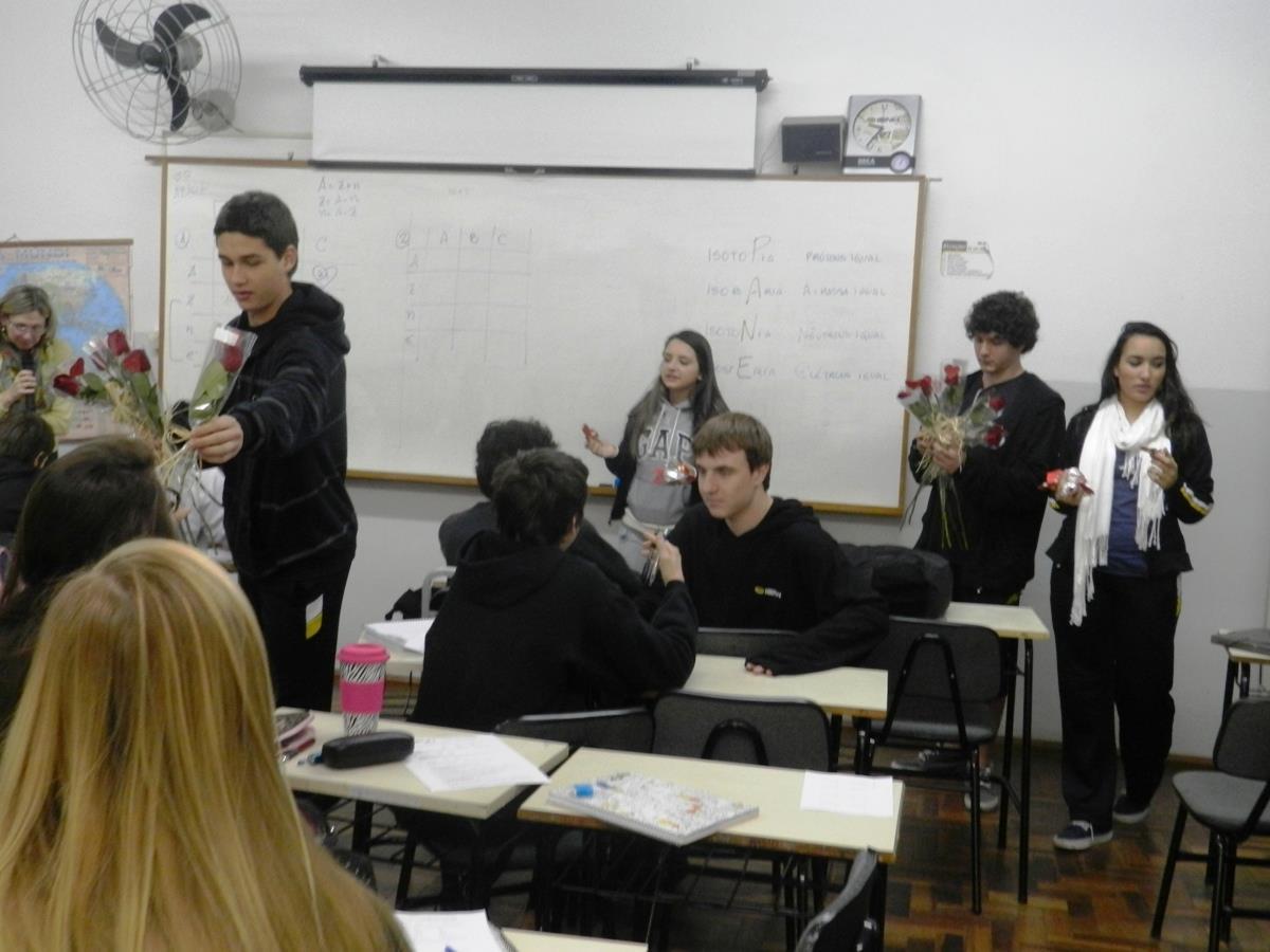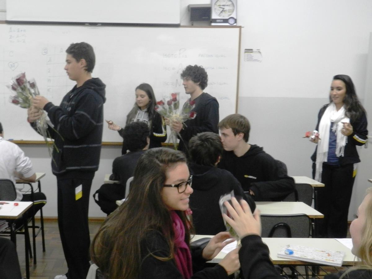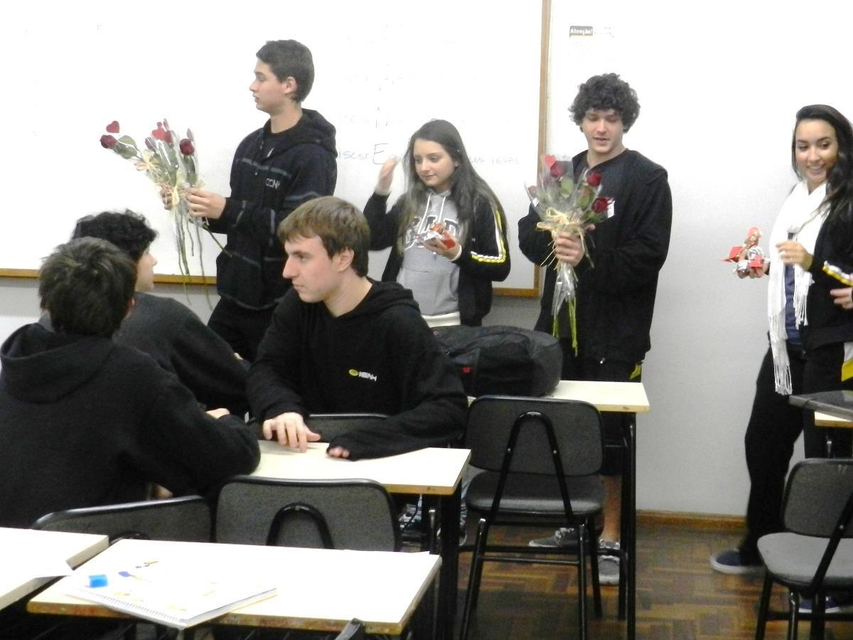 As homenagens foram para amigos/as, professores/as e, obviamente, namorados/as. O grupo entregou aproximadamente 300 rosas e trufas na manhã de hoje, 12 de junho. O dinheiro arrecadado com a ação será utilizado para a Formatura das turmas, que ocorre dia 12 de dezembro.