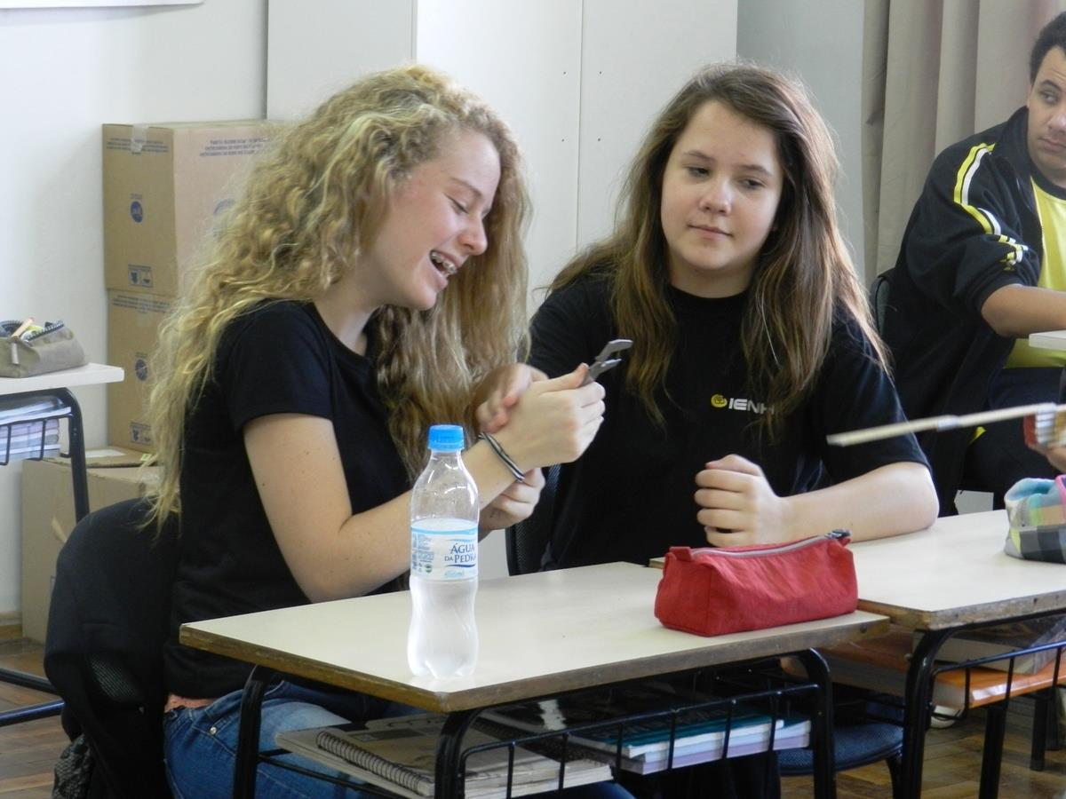 A turma da 8ª série B da IENH – Unidade Fundação Evangélica recebeu, na aula do Componente Curricular de Matemática, o Coordenador de Patrimônio da IENH – Wilson Groth.