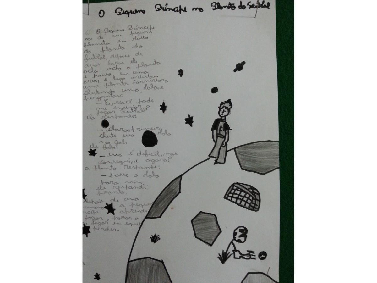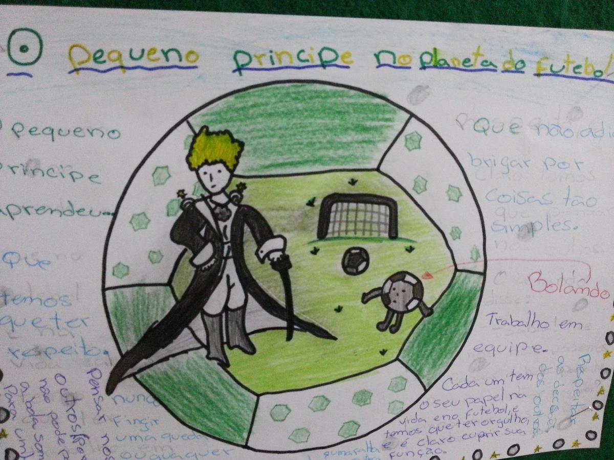 Além disso, os alunos foram desafiados a estabelecer uma aproximação da personagem principal com o mundo do futebol, criando um trabalho no qual deveriam apresentar o planeta do futebol e listar os ensinamentos que esse planeta pode proporcionar.