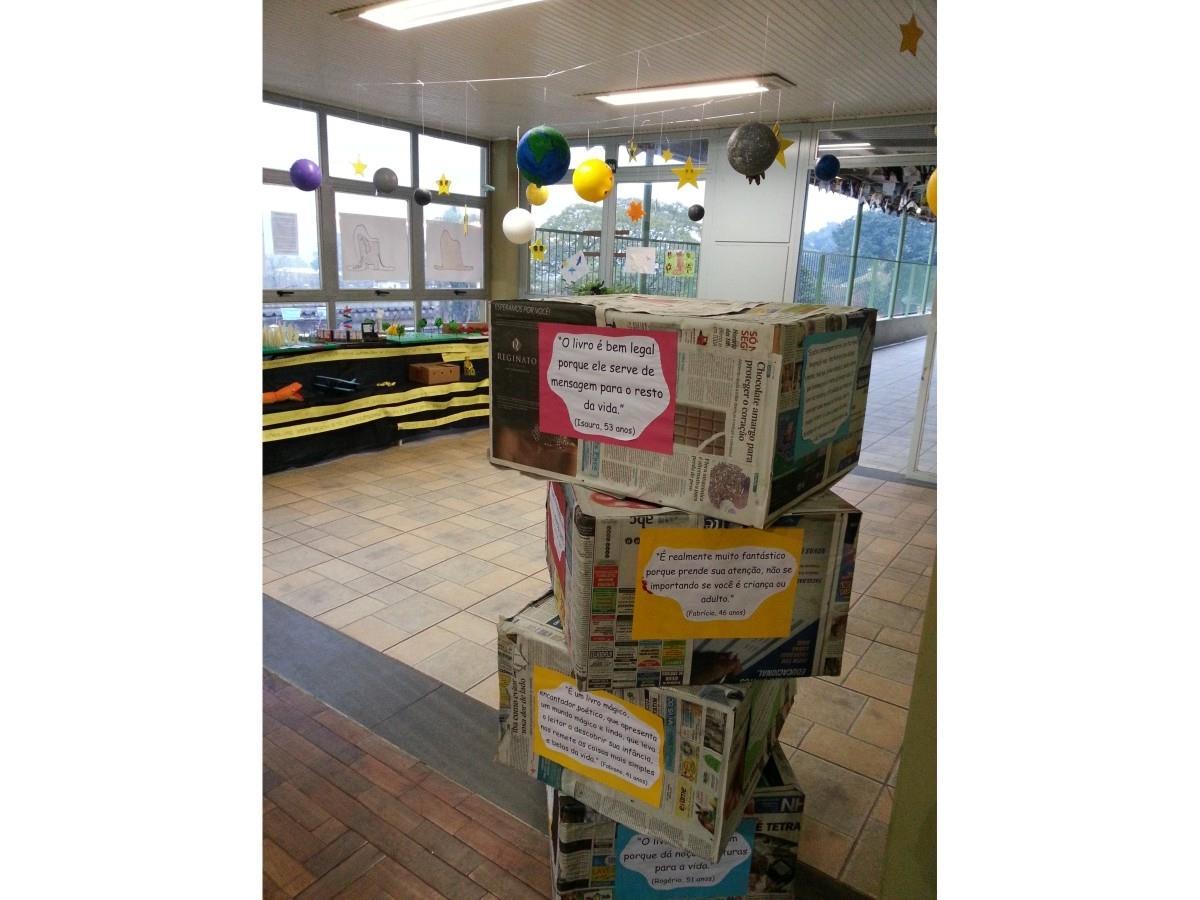 Outra atividade desafiadora, na qual os alunos usaram os conhecimentos adquiridos na leitura e exploraram sua criatividade, foi uma linda exposição montada na entrada da feira do livro da Unidade. Cada elemento e personagem presente na história foi representado pelos alunos. Na exposição também foram lembradas importantes frases presentes do livro que podiam ser vistas através de monóculos e lidas em Inglês e Português. As opiniões do diferentes leitores do Pequeno Príncipe também compuseram a exposição.