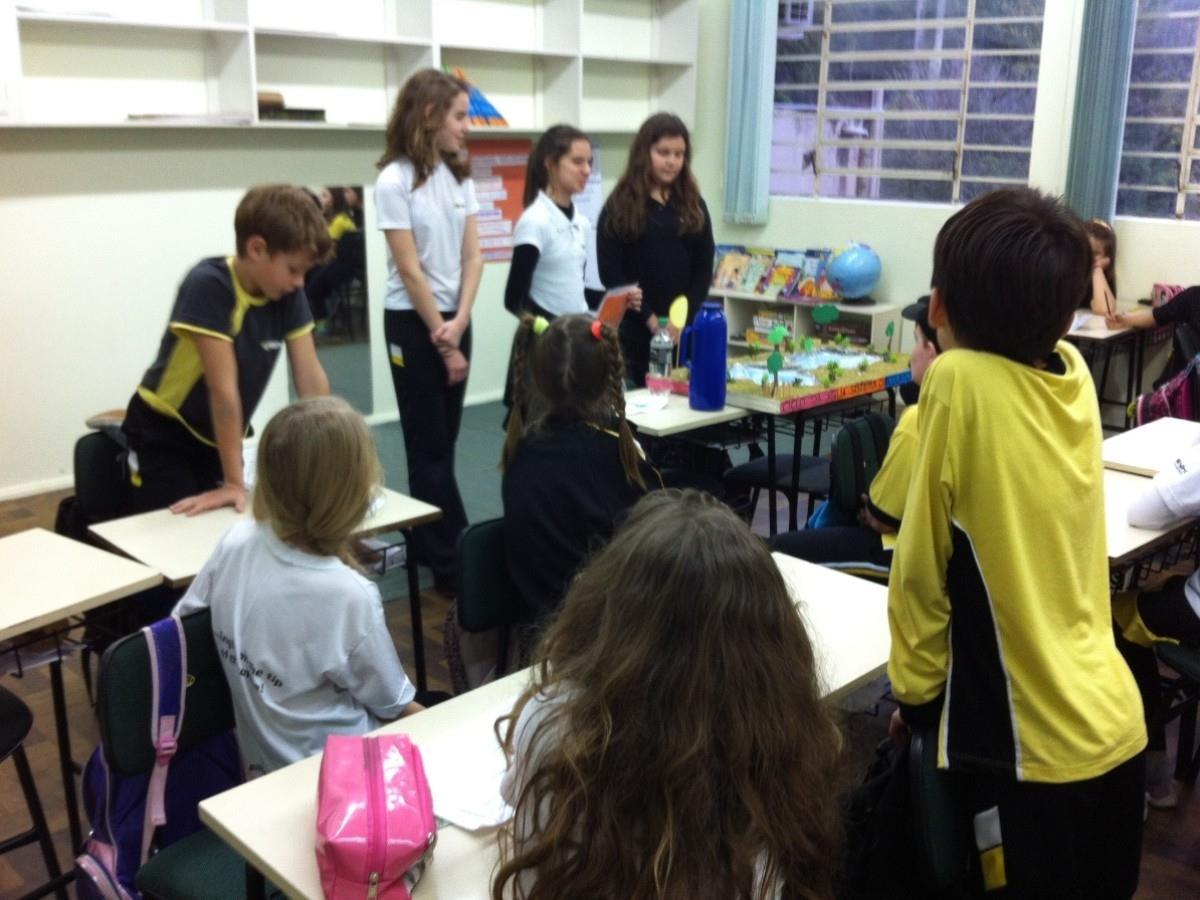 Dessa forma, as alunas Isadora, Bruna, Viviana, Tatiana e Valentina apresentaram suas pesquisas para a Feira de Ciências, na sala de aula do 4o ano A, onde os alunos puderam realizar trocas sobre os assuntos pesquisados: tratamento da água para consumo, os estados físicos da água e a importância do uso consciente desse recurso.