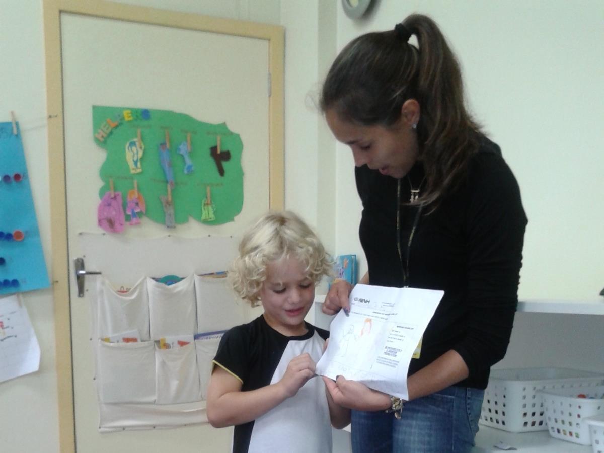 Como tema de casa, os alunos do Nível 5A da Educação Infantil Bilíngue da IENH – Unidade Pindorama tiveram que desenhar os membros da sua família e, com a ajuda dos familiares, escrever o nome de cada um deles. Ainda em casa, os estudantes deveriam apresentar os familiares na Língua Inglesa, como forma de treinamento para a apresentação em Sala de Aula.