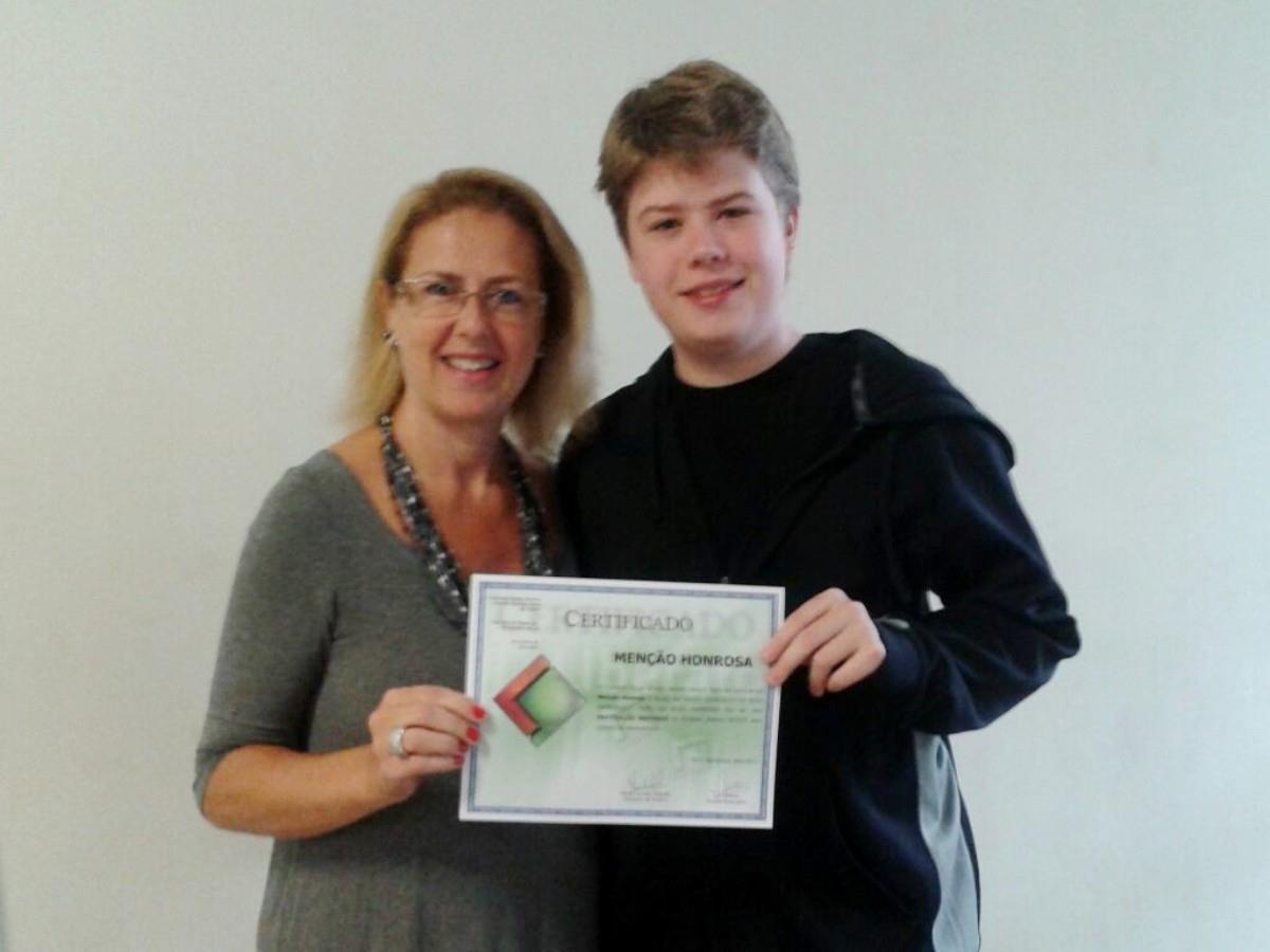 A homenagem ocorreu em função da colocação de 1º lugar, na prova de seleção da escola técnica, conquistada pelo ex-aluno da 8ª série 2014 da IENH - Lucas Dauth Franck, que está matriculado no Curso Técnico em Eletrônica.