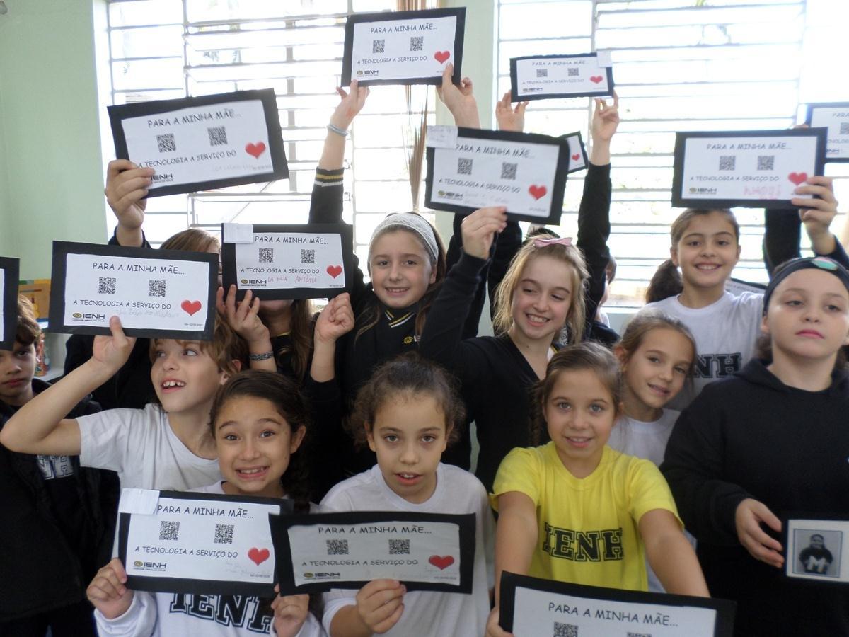 Os alunos dos 4ºs anos do Ensino Fundamental da IENH – Unidade Oswaldo Cruz prepararam uma surpresa muito diferente para homenagear as mães. Aliando tecnologia e emoção, os estudantes declararam todo seu amor pelas mães em um cenário especial, preparado pelas Professoras Letícia de Almeida, Bianca dos Reis e Carolina Flesch. A declaração foi filmada e postada no canal privado dos quartos anos no Youtube.