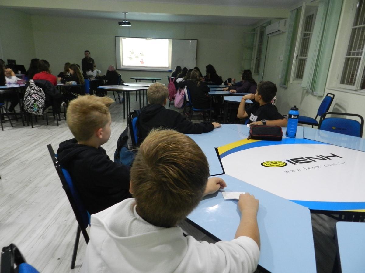 A atividade tem o objetivo dos alunos se familiarizarem com os ambientes da Fundação Evangélica, a fim de que iniciem os estudos do 7º ano na Unidade.