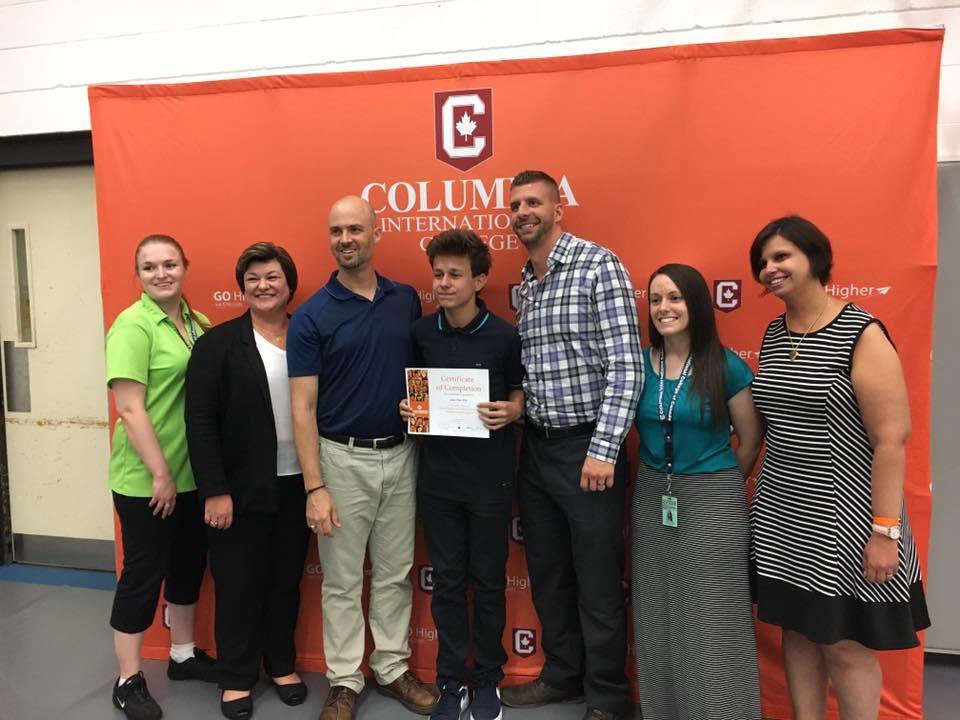 No final da última semana, ocorreu a formatura do grupo. Os alunos receberam os certificados de conclusão das aulas de Inglês no Columbia International College.