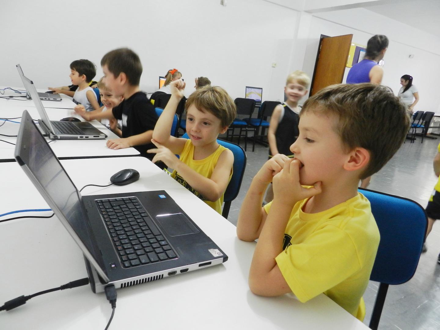 Um dos momentos ocorreu ontem, 16 de março, na aula de Educação Tecnológica da turma, com a Professora Jaqueline Grassmann. No Laboratório de Informática, os alunos pintaram ovos de Páscoa digitais. Com criatividade coloriram e enfeitaram os ovos na tela do computador. Depois de concluírem a atividade e imprimirem os ovinhos, os estudantes realizaram atividades temáticas no site do coelho.
