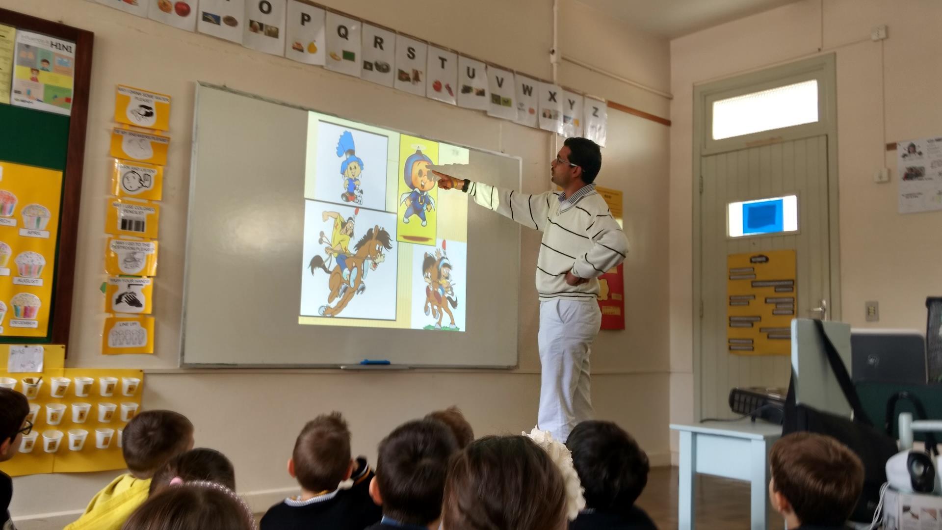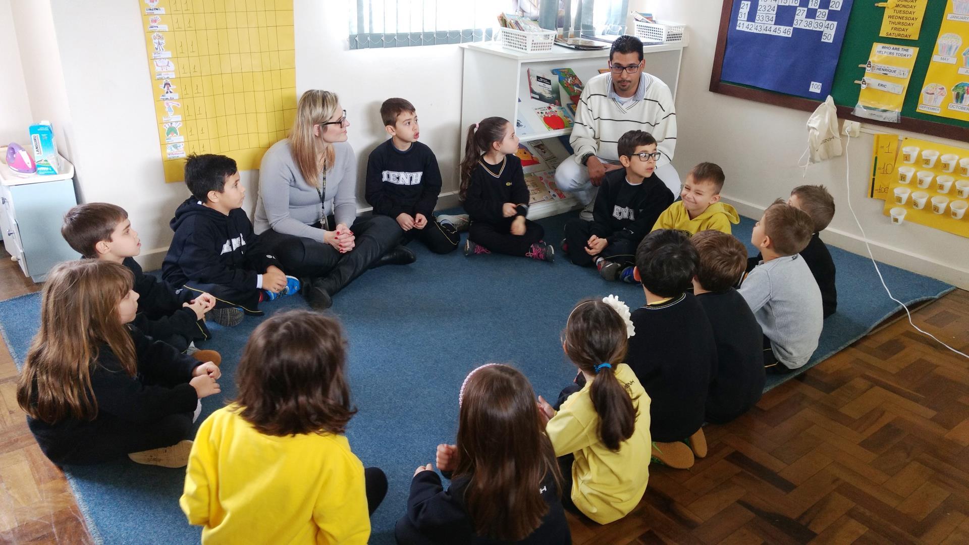 O argentino Patricio Ledesma, pai do aluno Nicholas, aceitou o desafio de conversar com a turma sobre brincadeiras e jogos de sua infância na Argentina, seu país de origem. Na oportunidade, comparações entre elementos da cultura gaúcha e brasileira com a cultura argentina (comidas típicas, heróis, bandeiras, mapas, entre outros) foram abordados por Ledesma. Os alunos puderam participar, realizando perguntas ao longo da visita e tornando o encontro muito significativo.