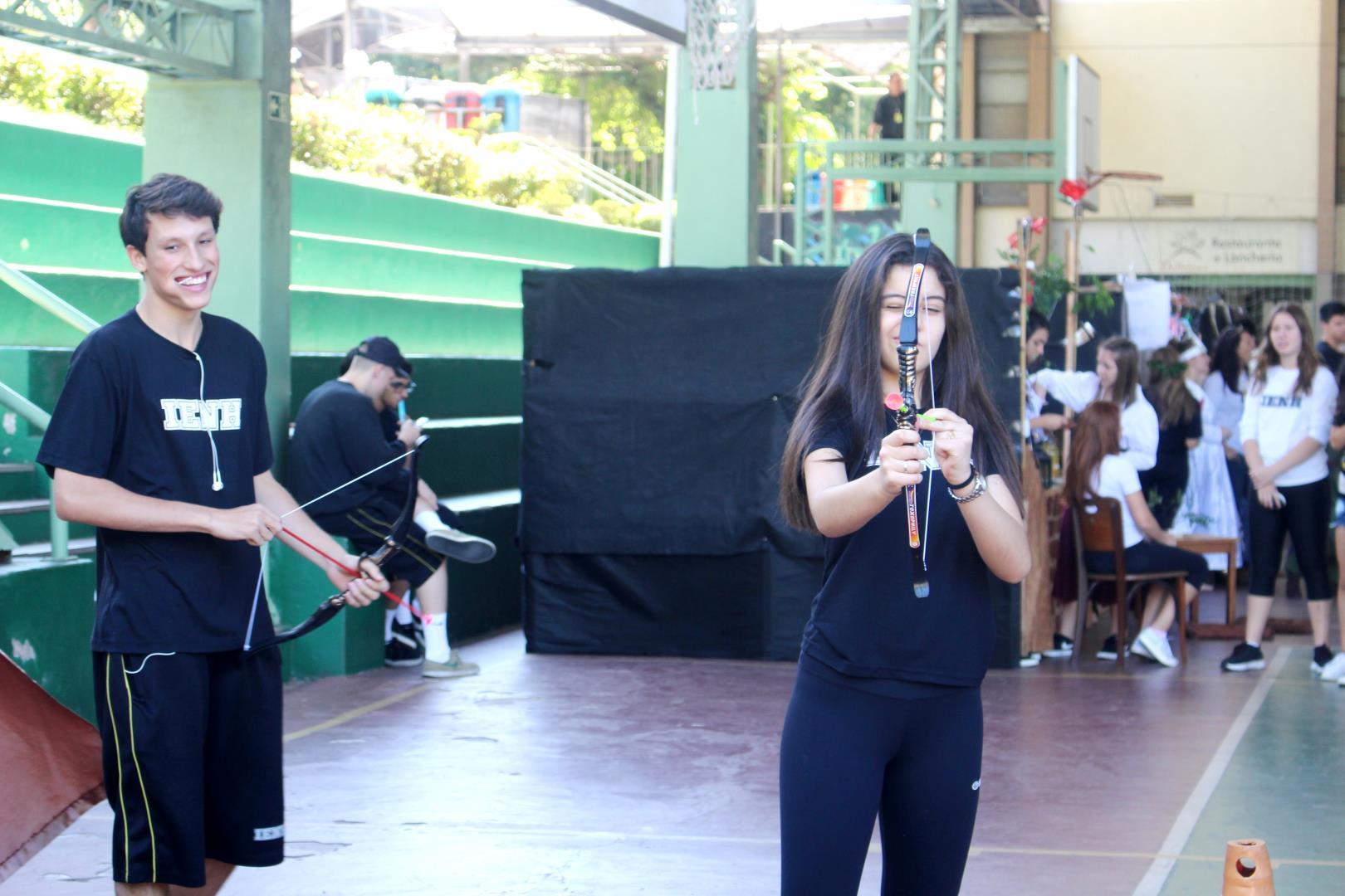 Na chegada do grande dia, todos os alunos da Unidade puderam prestigiar o trabalho realizado pelos colegas. Caracterizados como personagens da época medieval, os alunos das 1ªs séries organizaram venda de alimentos e bebidas típicos, produção de tranças medievais, além de atividades como arco e flecha.