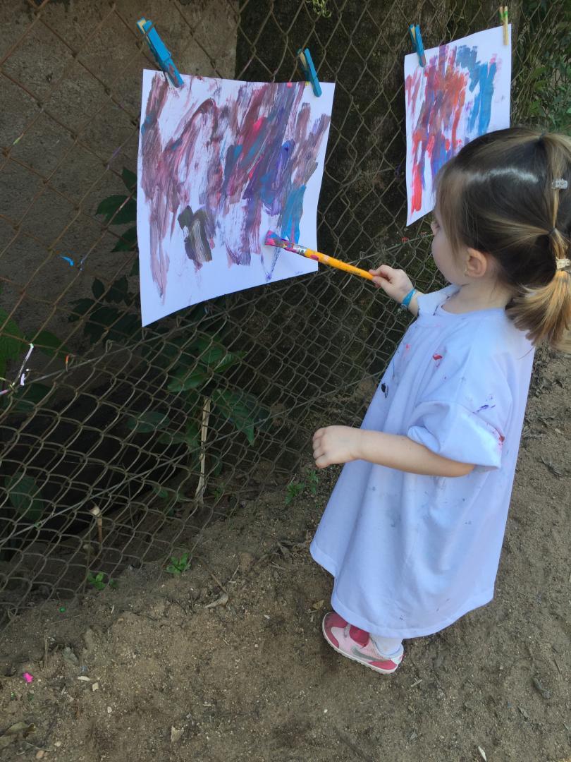 A partir da história “Confusão no Jardim”, de Ferruccio Verdolin Filho, os alunos foram convidados a realizar a pintura dos bichinhos do livro no pátio da escola, utilizando pincel e tinta guache.