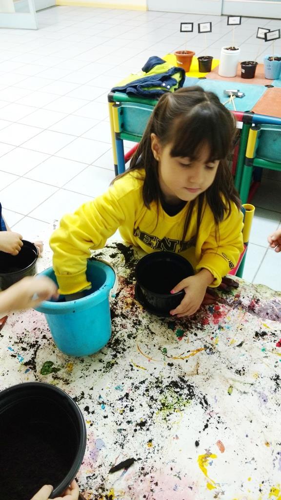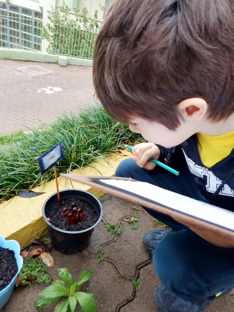 Diante disso, a Professora Gabriela Venturini propôs o plantio do Pinhão, a semente da árvore Araucária. No mês de junho, os alunos pesquisaram sobre o desenvolvimento e crescimento dessa planta e a plantaram. Desde então, mensalmente acompanham o seu crescimento através de registros, fotografias e de muito cuidado e carinho, os quais são passados através da limpeza dos vasos, regagem e do contato semanal com as plantas.