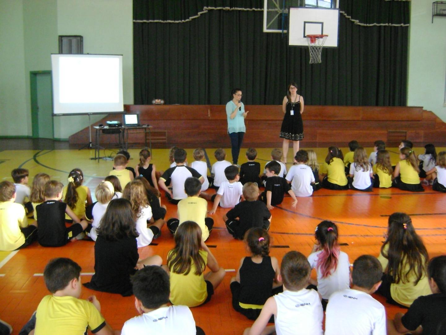 Organizado pelos 4ºs anos do Ensino Fundamental, o momento contou com a apresentação de um vídeo com fotos da cidade produzidas pelos alunos, um rap também composto por eles na Língua Inglesa, acompanhados pelo som das flautas e dos xilofones. Além disso, também cantaram “Parabéns a você” na Língua Espanhola.