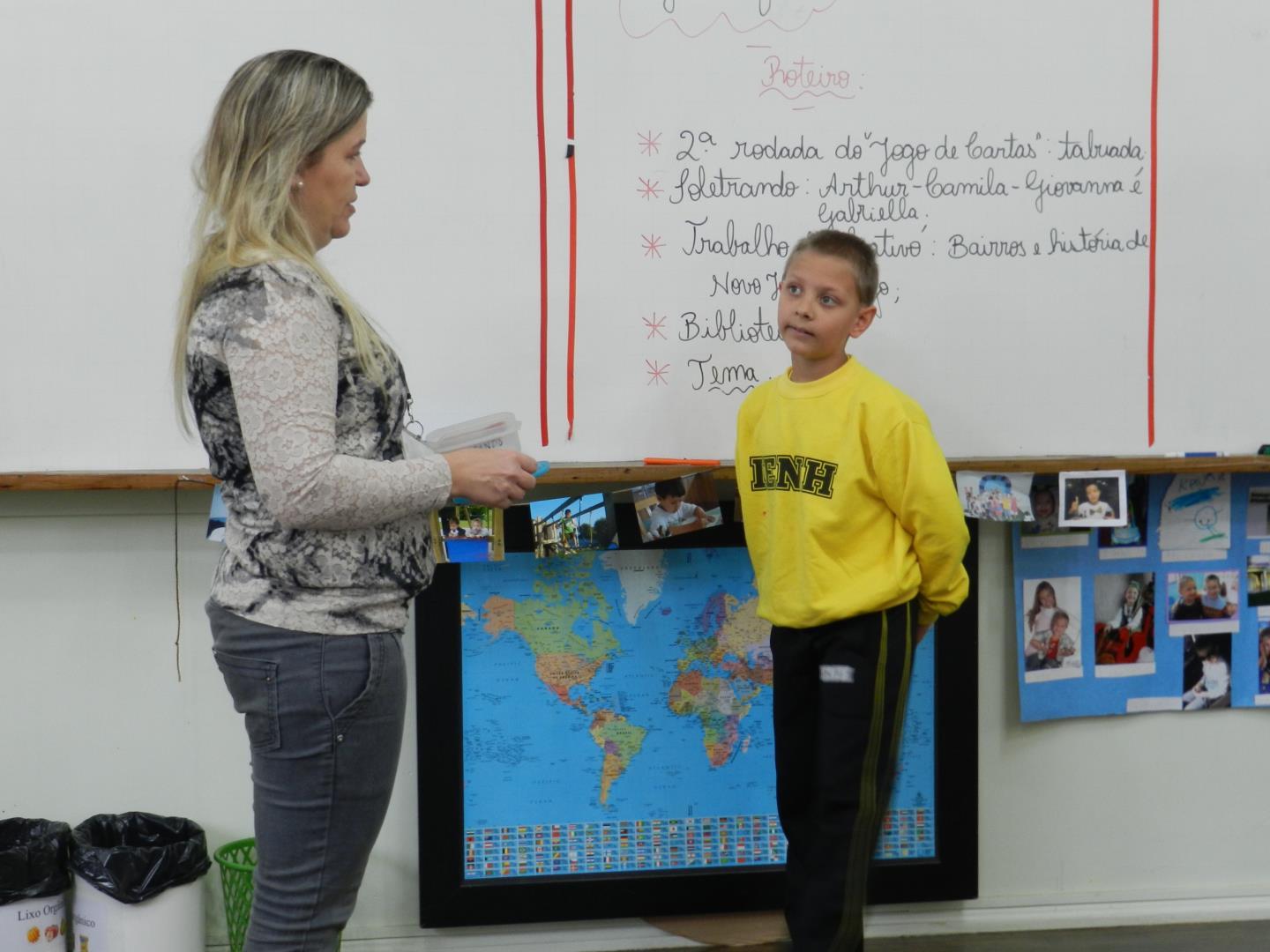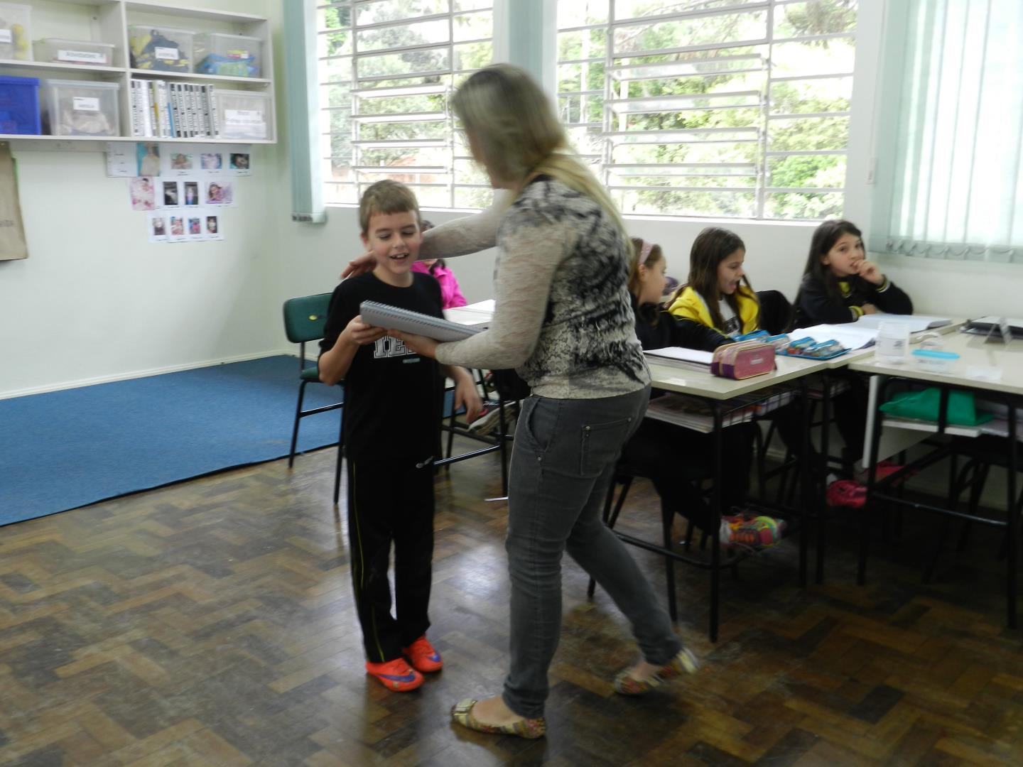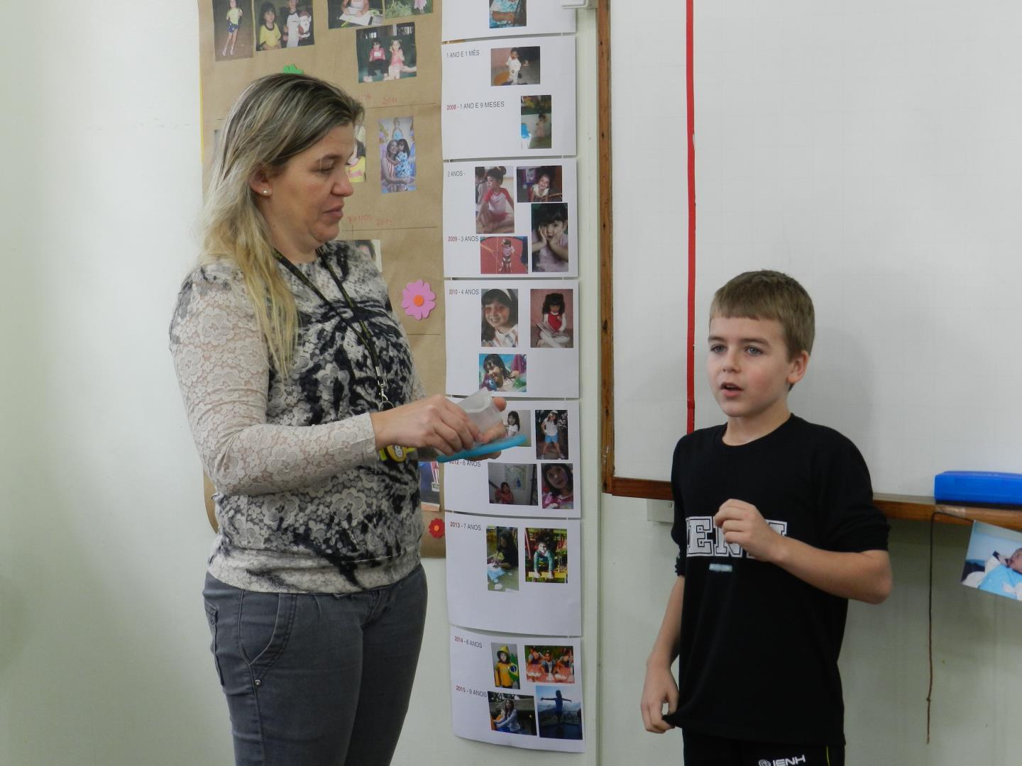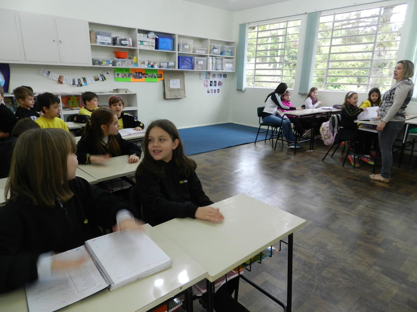 A partir de dúvidas que surgiram nos alunos na hora de escrever, a Professora Mari Lúcia Klug elaborou a atividade denominada Soletrando. A cada dia, três alunos são sorteados e cada um deve soletrar três palavras diferentes. Dezesseis, acontecimento, seiscentos e mereço são algumas das palavras já soletradas pelos estudantes.
