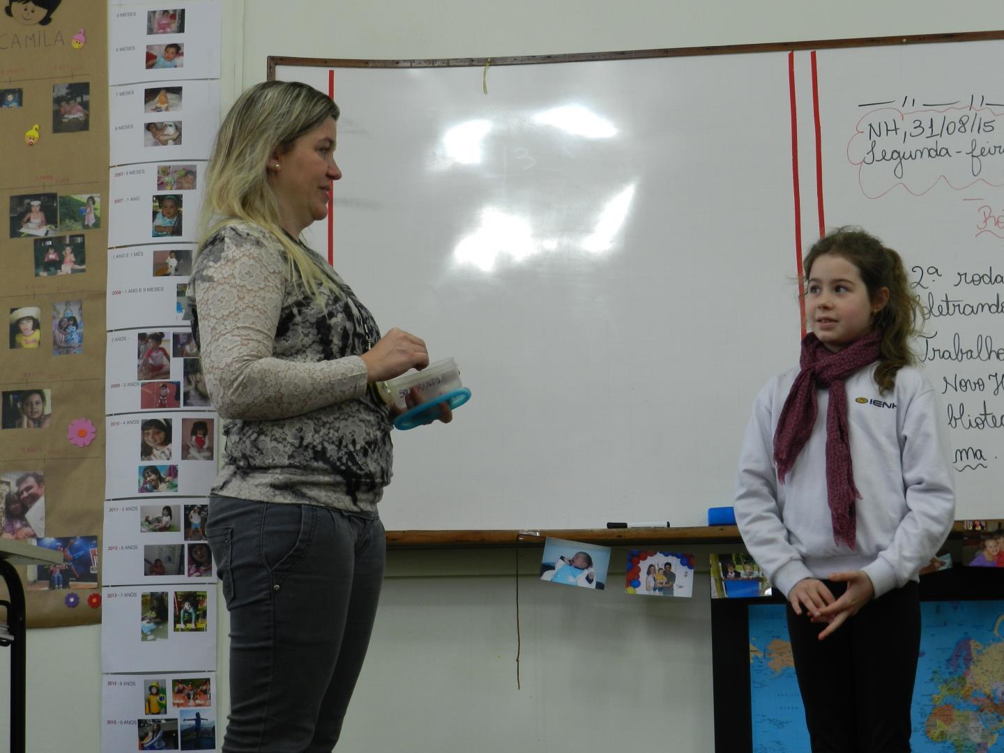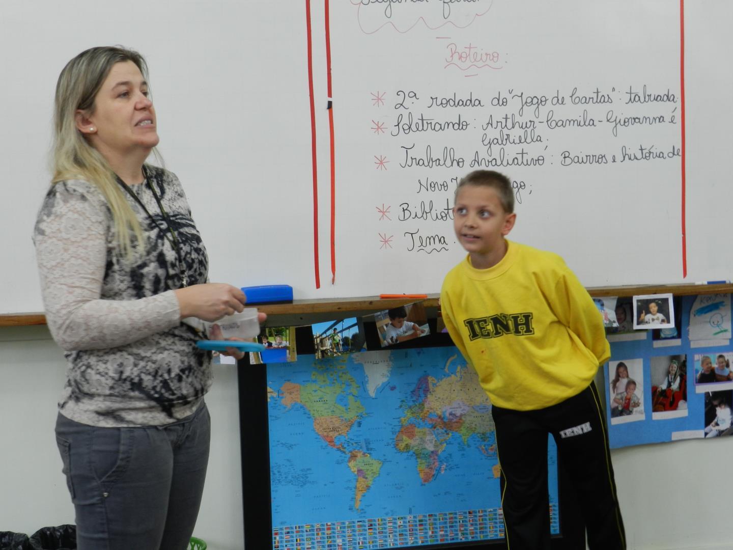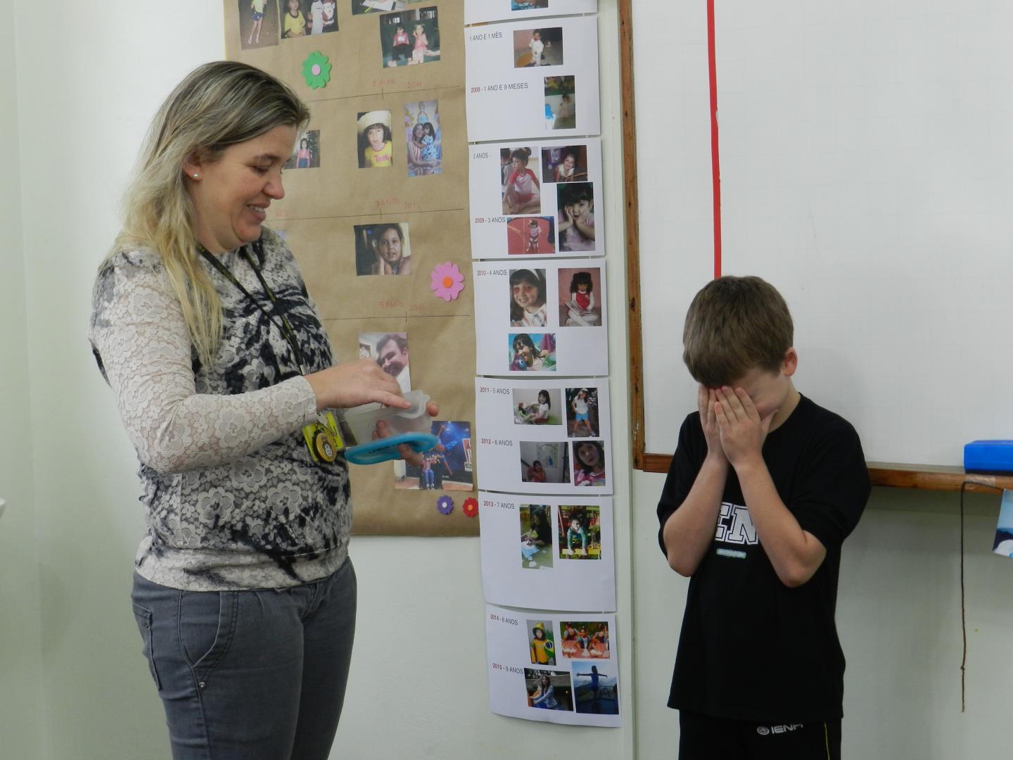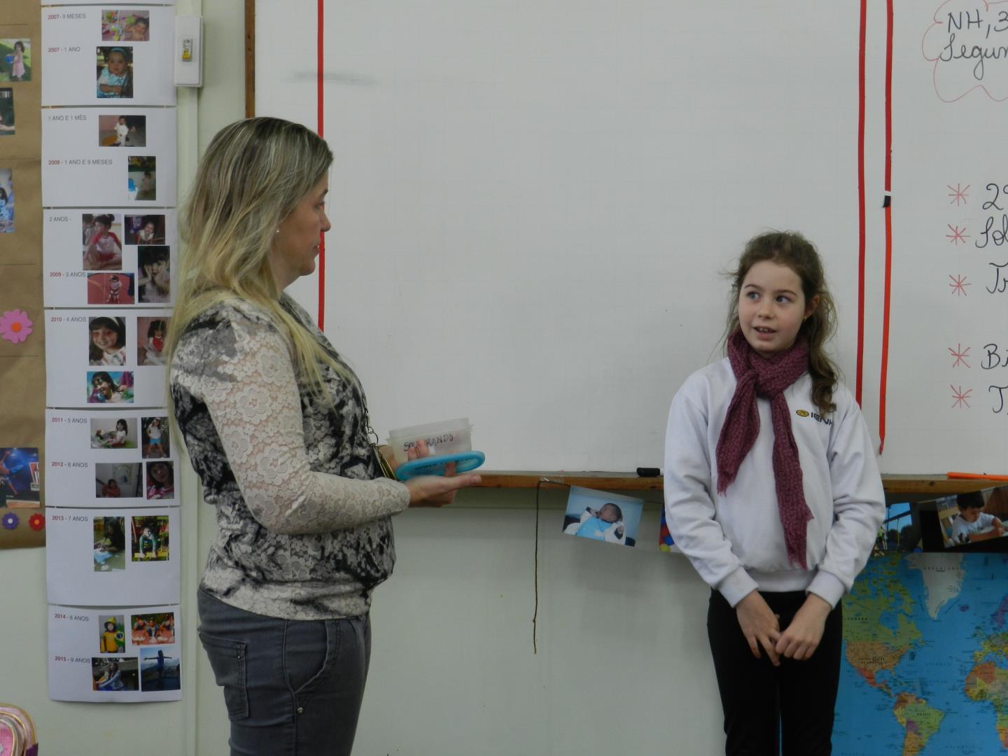 A partir de dúvidas que surgiram nos alunos na hora de escrever, a Professora Mari Lúcia Klug elaborou a atividade denominada Soletrando. A cada dia, três alunos são sorteados e cada um deve soletrar três palavras diferentes. Dezesseis, acontecimento, seiscentos e mereço são algumas das palavras já soletradas pelos estudantes.