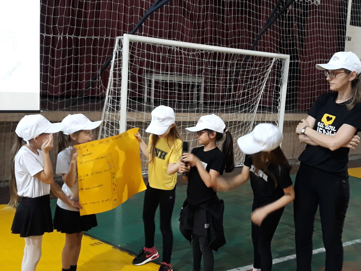 No Ginásio da Unidade Fundação Evangélica, os estudantes participaram de diversas atividades. Além da entrega de bonés personalizados do evento, a tarde iniciou com boas-vindas das Teachers Ana Carolina, Fabiane e Kelly, acompanhadas pelas Professoras Janete, Scheila e Vanessa.