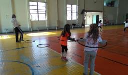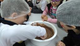 Durante as divertidas tarefas, os estudantes precisaram trabalhar em conjunto. Necessitaram da colaboratividade para alcançar o número 100 nas tarefas desenvolvidas, por exemplo.