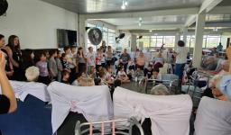 Na visita, as crianças demonstraram sensibilidade e carinho com os idosos, compartilhando curiosidades sobre suas vidas e ouvindo histórias dos vovôs e vovós do Lar. Além disso, entregaram desenhos produzidos em sala de aula, tornando o encontro ainda mais afetivo e significativo.