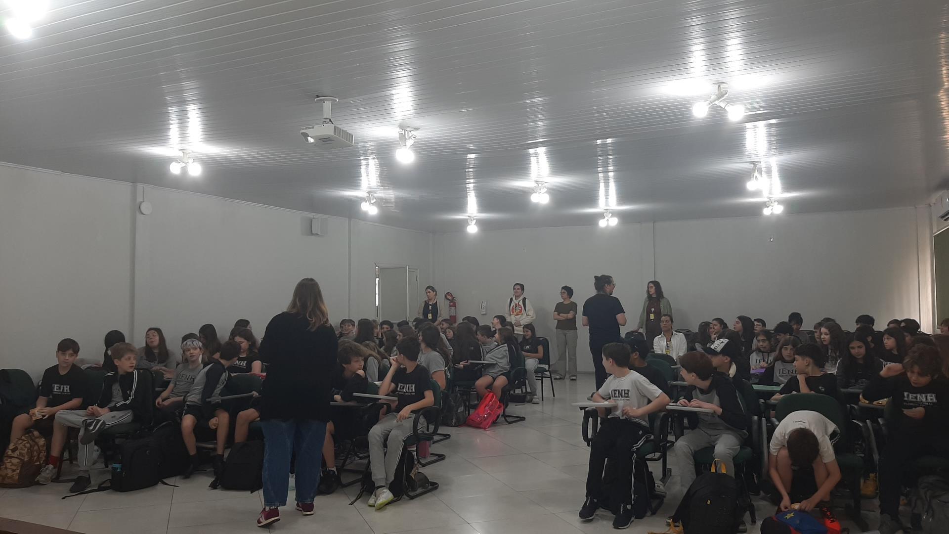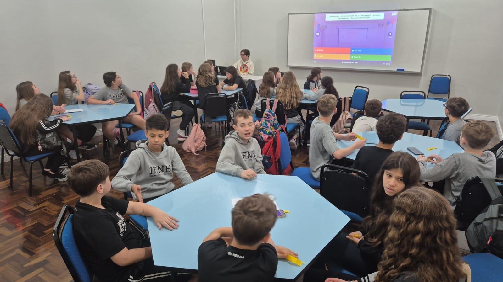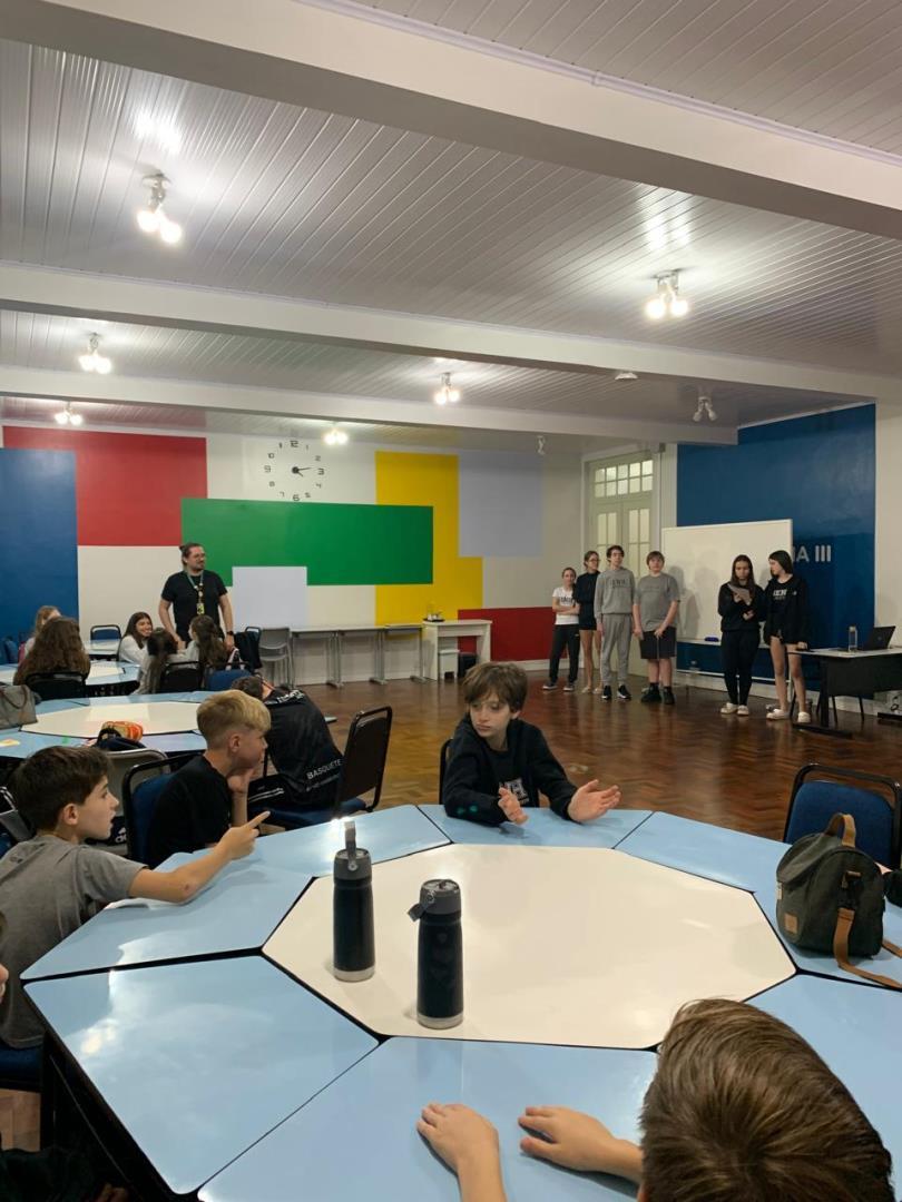 As turmas também participaram de uma aula integrada, promovendo a troca de experiências e a colaboração entre os grupos. Após o recreio, o encontro seguiu com dois períodos de aula regular, encerrando uma manhã marcada pela convivência, pela troca e pelo sentimento de pertencimento.