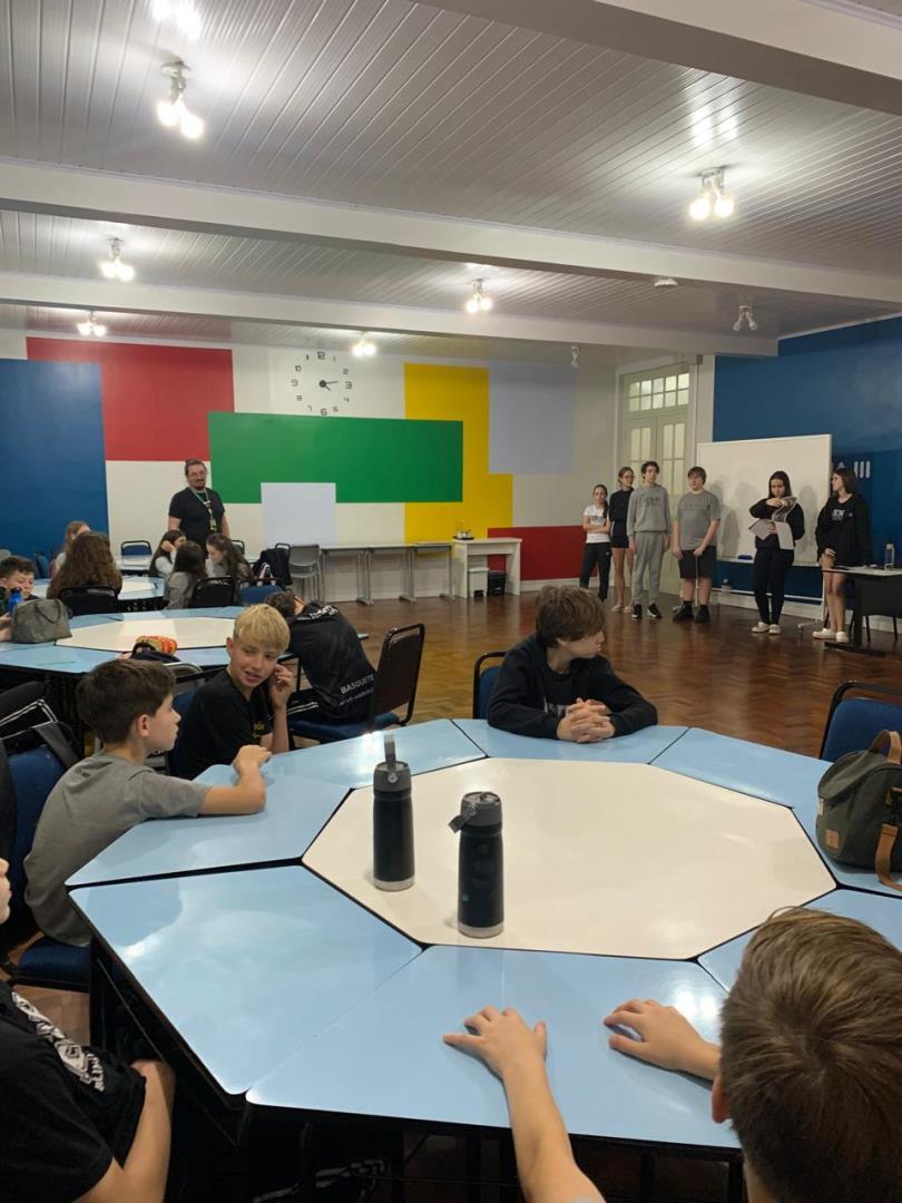 Durante o ano, diferentes edições do Pinwaldo foram realizadas, proporcionando encontros entre turmas e Unidades para fortalecer vínculos e facilitar a adaptação à nova etapa escolar. Nesta última edição, a programação iniciou às 7h30min, com um momento de meditação e a distribuição de cores para formar grupos mistos entre as turmas, incentivando novas amizades. Em seguida, os estudantes confeccionaram um cartão dos desejos e sentimentos em relação ao próximo ano, expressando expectativas e emoções sobre a transição.