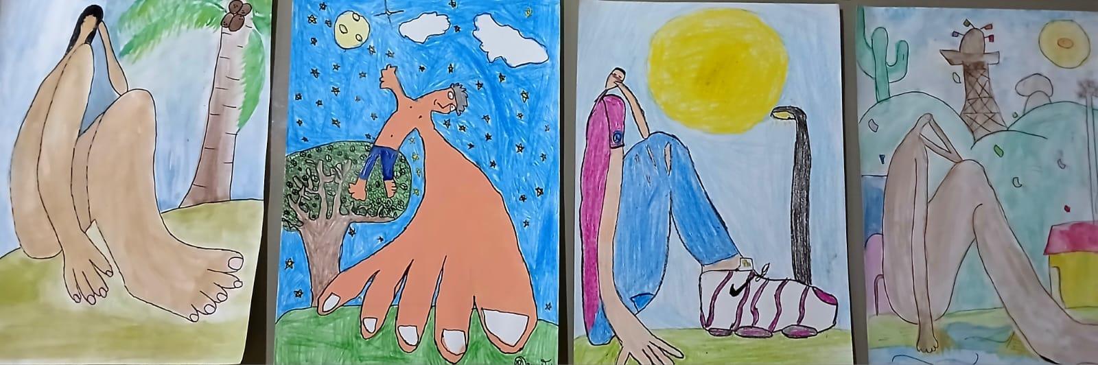 A etapa prática do projeto foi marcada por muita criatividade. Utilizando técnicas variadas como aquarela, têmpera, lápis de cor, giz de cera e mistura de materiais. Os alunos criaram obras autorais inspiradas em grandes nomes femininos da arte.