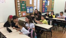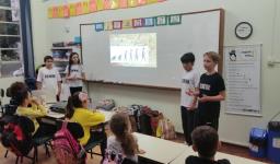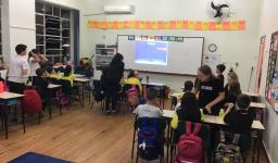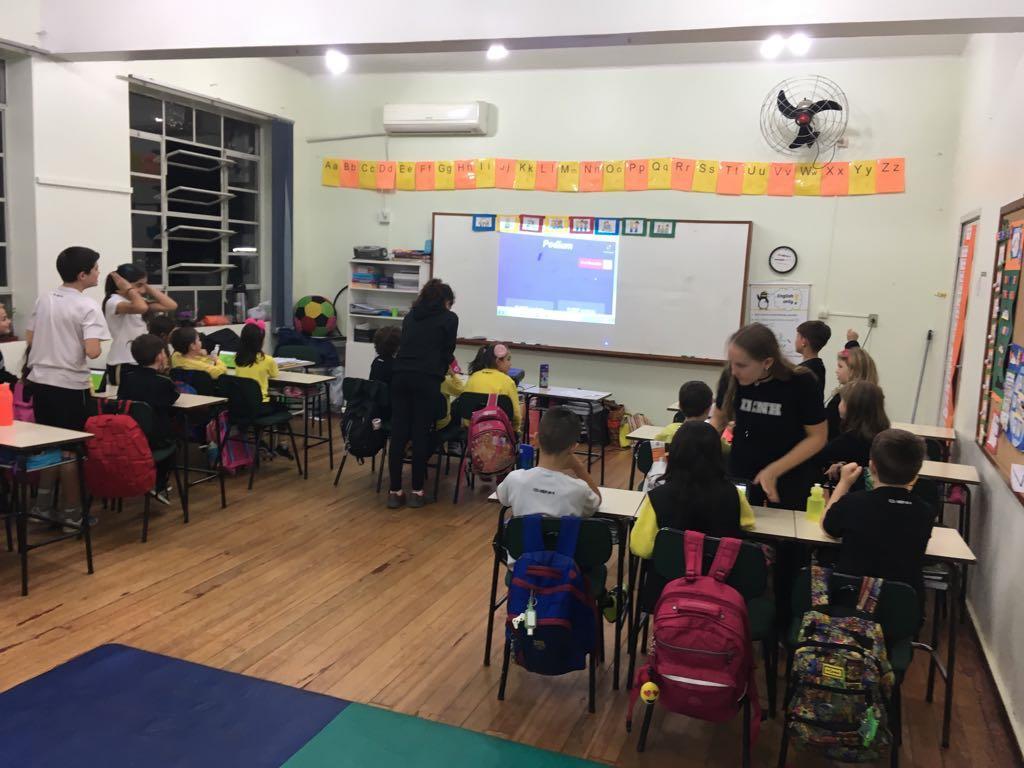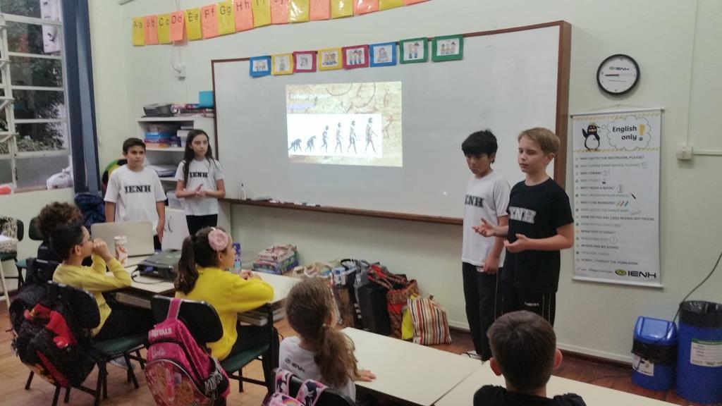 No último mês, a turma recebeu uma visita muito especial: os alunos do 6°ano, que compartilharam seus conhecimentos sobre a evolução do homem e como isso ocorreu nos diferentes períodos históricos, além da descoberta do fogo e as primeiras moradias. Convidados pela Professora Ana Paula e desafiados nesta proposta pela Professora Anelise Domingues, os estudantes dos 6ºs anos dividiram-se em dois grupos e criaram estratégias para compartilhar com o 2° ano. Preocupada em significar e aproximar os alunos do entendimento de fatos históricos de maior complexidade para a faixa etária do 2°ano, a turma do 6º ano confeccionou materiais visuais, experiências com sons e sensações táteis. “Foi uma tarde repleta de significados que culminou com um jogo virtual, um Kahoot, preparado pelos alunos do 6°ano envolvendo os conhecimentos compartilhados”, comenta a Professora Ana Paula.