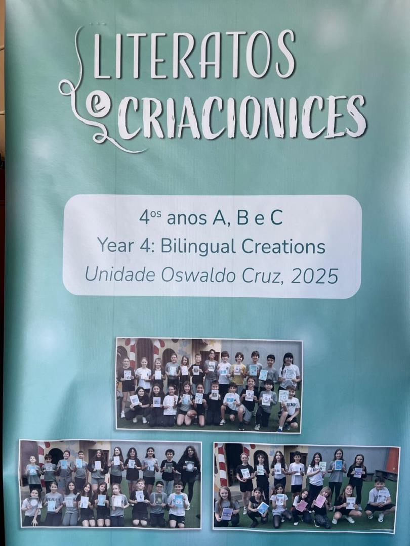 Criatividade e imaginação ganharam forma nas turmas Year 4A, 4B e 4C do Ensino Fundamental do Currículo Internacional Bilíngue da IENH – Unidade Oswaldo Cruz. No dia 13 de setembro, os alunos celebraram o encerramento de um projeto especial de produção de livros digitais, intitulado “Literatos e suas criacionices”. A atividade reuniu pesquisa, escrita e arte, transformando os estudantes em verdadeiros autores.
