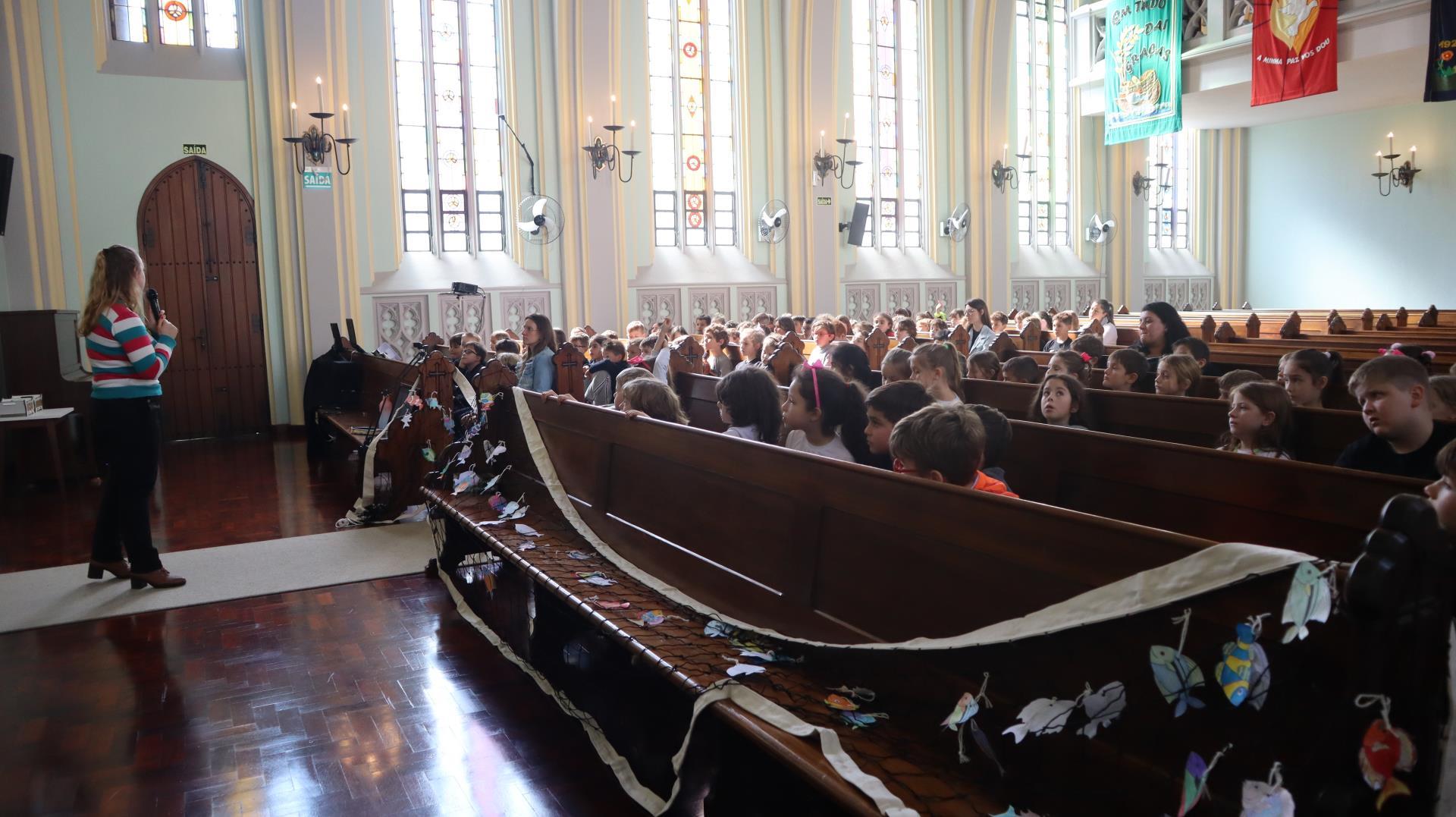 A proposta abordou uma história em que Jesus ajuda os discípulos a pescarem e convida-os para serem “pescadores de gente”, auxiliando a espalhar o amor e a mensagem da vida plena e abundante para todas as pessoas.